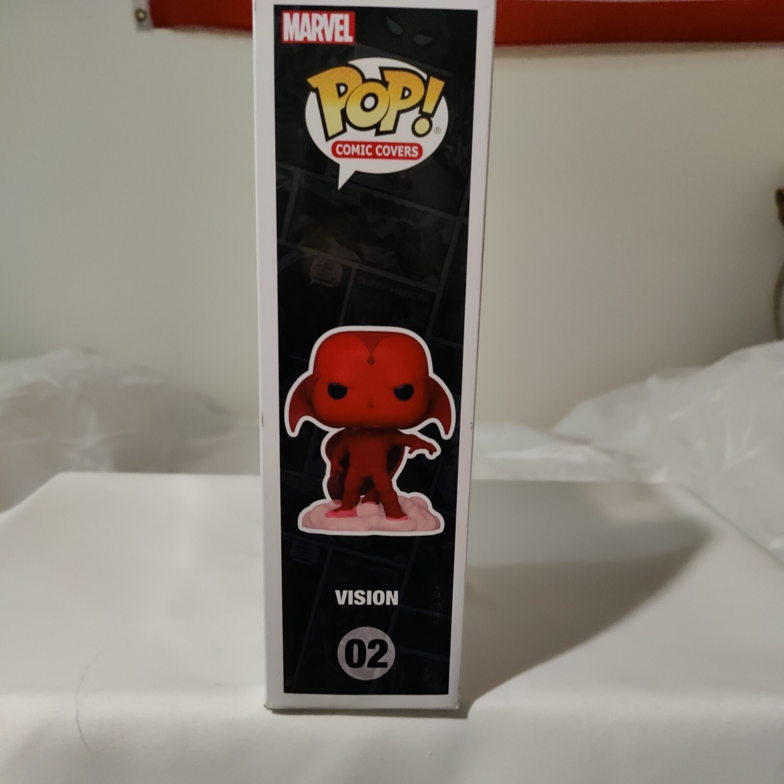 This Funko Pop figure features Vision from Marvel's The Avengers, with a red color scheme and collector's edition features. It is a vinyl figure that comes in its original packaging, unopened and sealed. The figure is part of the Avengers: Age of Ultron series and is a Target exclusive item. The Pop! figure is in standard size and has an accessory included. It is suitable for ages 8 and up and is a great addition to any Marvel or US comics collection. The figure is not customized or personalized and is not signed, but is a rare find due to its exclusivity.