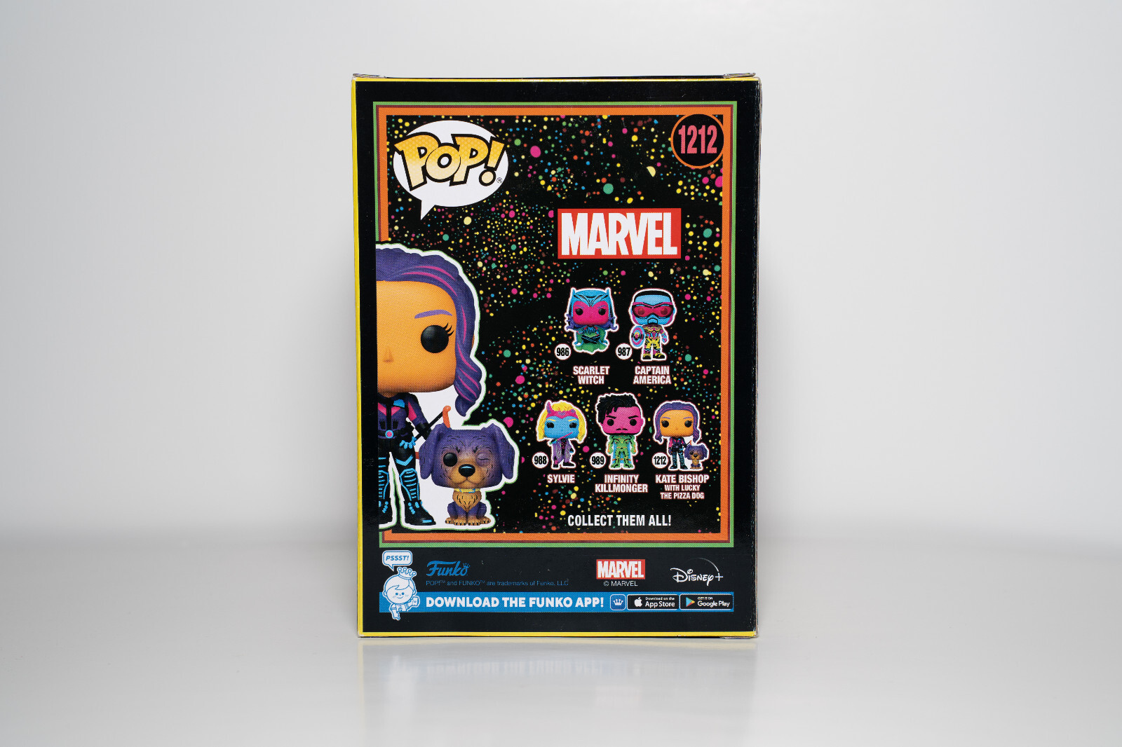 Target Exclusive black light Kate Bishop with Lucky, the Pizza dog. Unopened box with no damage! message me with any questions.