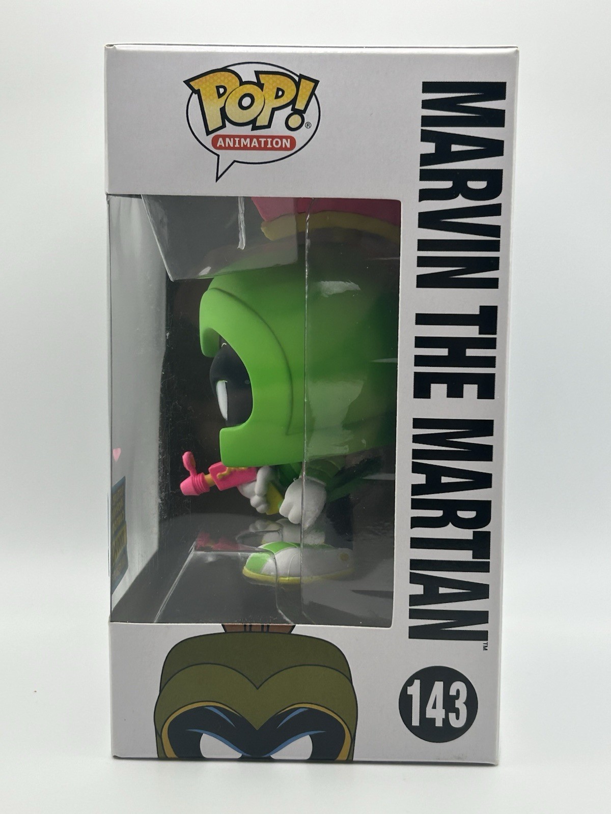 The Funko Pop! Marvin The Martian #143 (Neon Green) *SDCC 2017* 1000 PCS with Armor is a limited edition collectible figure from the Duck Dodgers franchise. This exclusive item is part of the Pop! Vinyl collection by Funko and features the character of Marvin the Martian in a vibrant neon green color. Released in 2017 at the San Diego Comic Con, this Pop! figure comes with original packaging and Pop Armor for protection. Standing at 4 inches tall, this Vaulted and Exclusive collectible is a must-have for any animation-themed collection. Please read item condition description before purchase! Funko Pop ships in a PopShield Armor and will be packaged very securely.