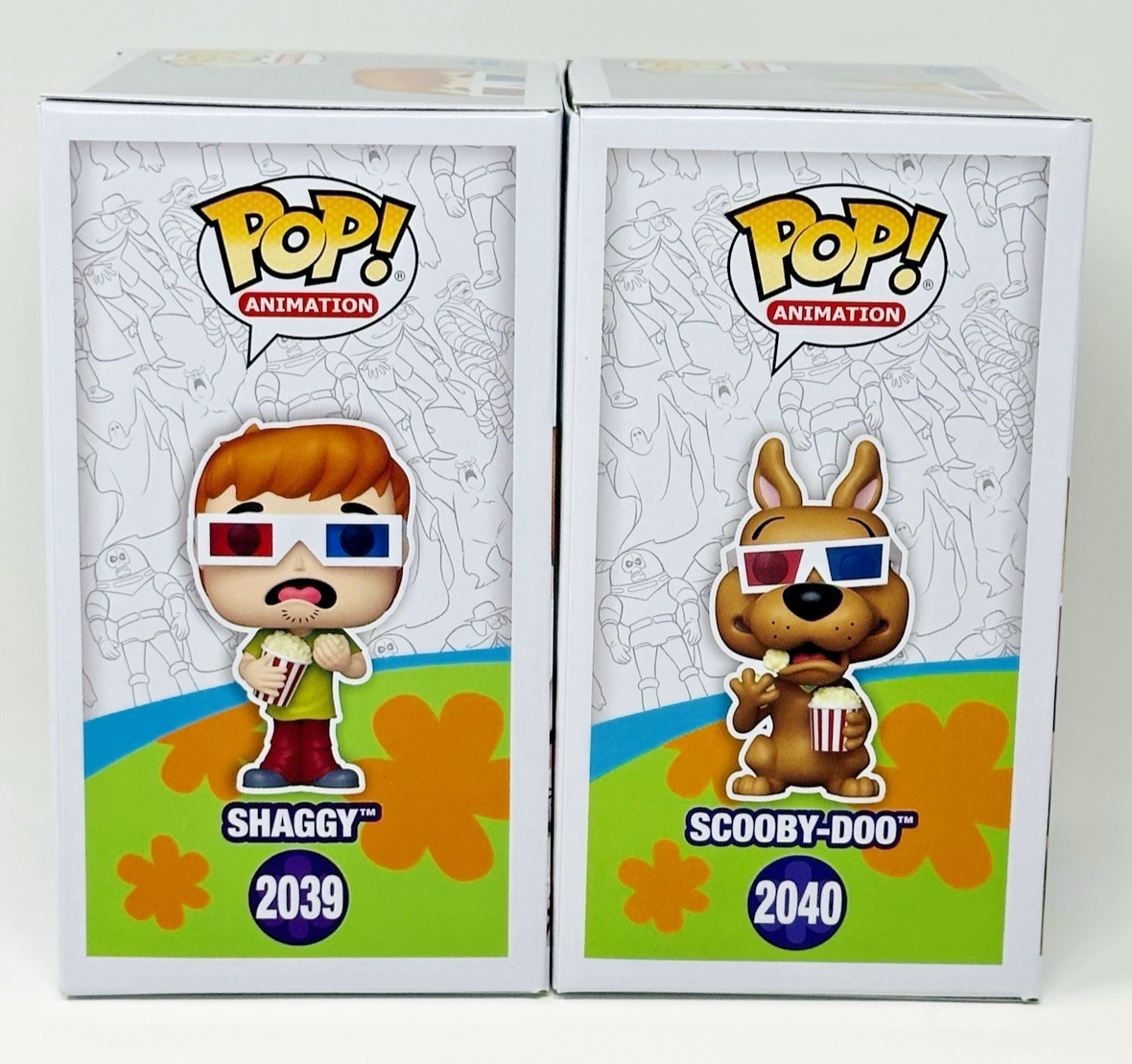 This 2 pack includes both Shaggy #2039 and Scooby-Doo #240 wearing 3D glasses with popcorn in hand. In Stock. Brand new. Fast and Secure Shipping. Shipped in Premium .5mm Protector.