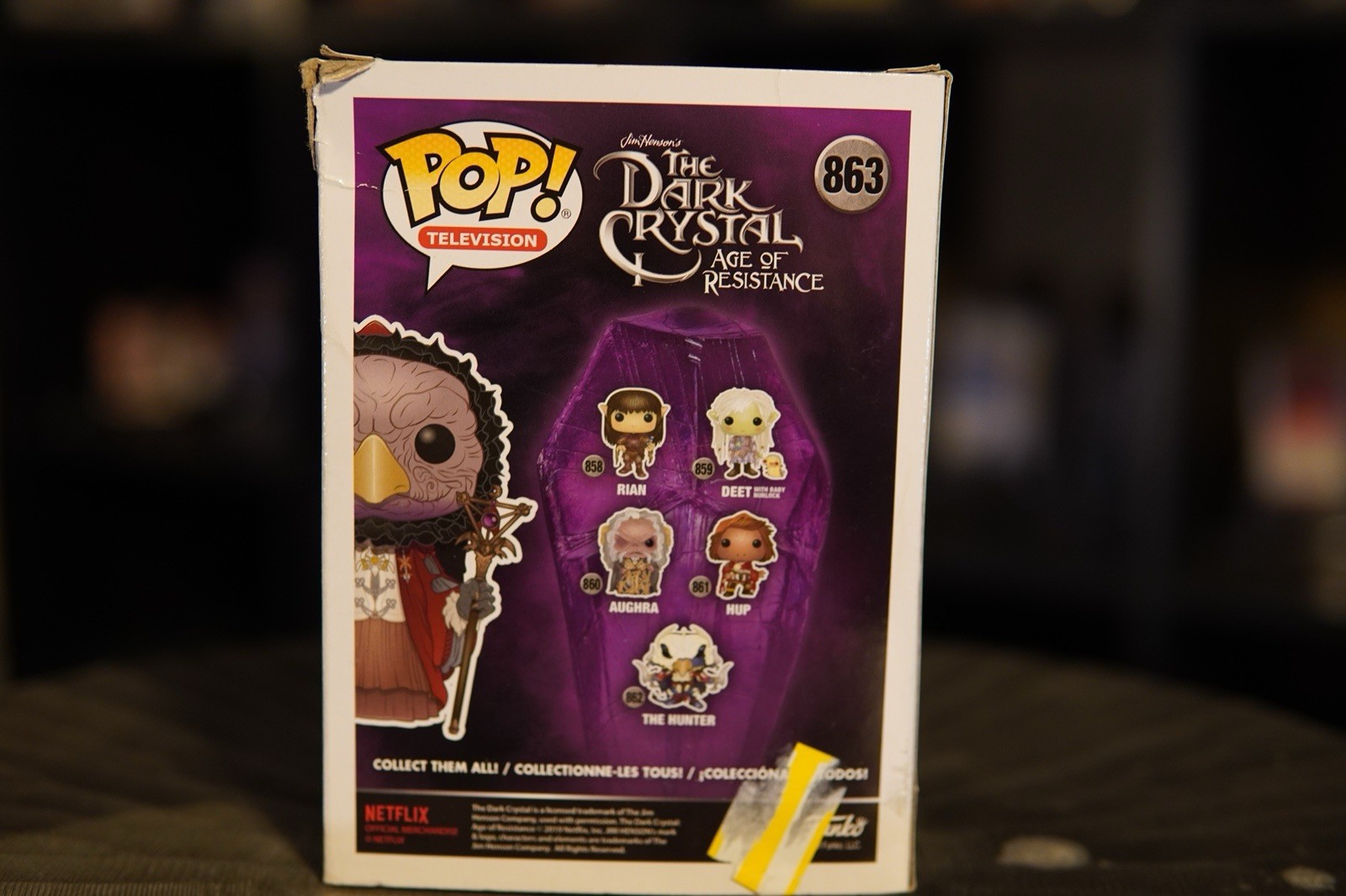 Explore the mystical world of "The Dark Crystal: Age of Resistance" with the Funko Pop! Television: The Chamberlain #863. This collectible figure captures the essence of the enigmatic Skeksis character in vivid detail, making it a must-have for fans and collectors alike. Crafted from durable vinyl, it stands as a testament to the enchanting franchise. This particular piece is a Target Exclusive, adding a unique layer of collectibility. The box, while damaged, does not detract from the figure's pristine quality. With its rich coloring and character-accurate design, this Pop! Vinyl from the 2019 release is an outstanding addition to any "The Dark Crystal" collection.