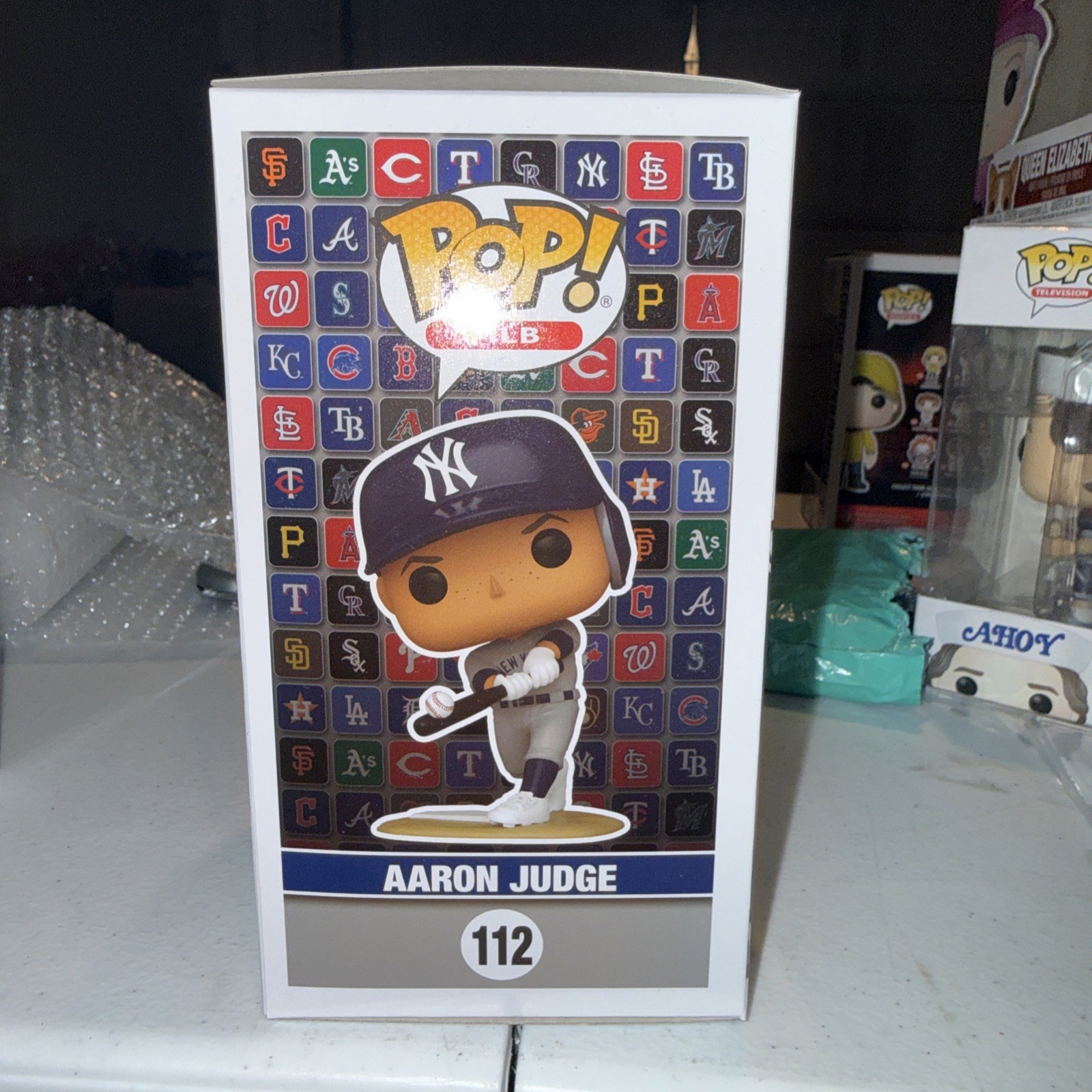 The Funko Pop! Vinyl Aaron Judge #97 is a collectible figure made of vinyl, featuring the popular MLB player in multicolor. It is part of the MLB Series 11 collection by Funko and comes with an Ecotek protector. This standard-sized figure is suitable for ages 3 and up, making it a perfect addition to any sports-themed collection or fan's display. Made in China, this Funko Pop! Vinyl is a must-have for Aaron Judge and MLB fans alike.