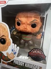 The product is a Funko Pop vinyl figure featuring Freddy Krueger from the "A Nightmare on Elm Street" franchise. This specific figure depicts Freddy without his signature hat, instead showcasing his iconic syringe fingers. Part of the Pop! Vinyl series, this collectible item is a special edition and is number 224 in the series. With a horror movie theme, the figure is vaulted and highly sought after by collectors.