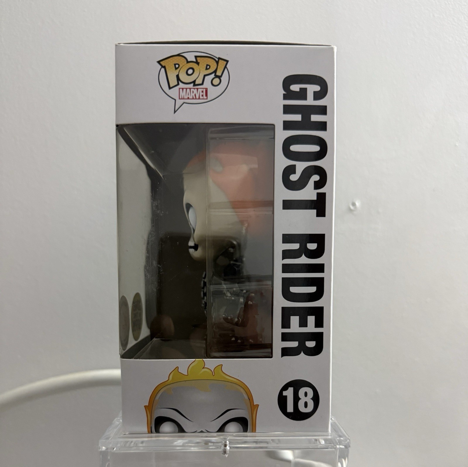 The product is a Funko Pop! Vinyl figure of the Marvel character Ghost Rider, specifically from the Marvel S1 series. This figure features Glow In The Dark detailing and comes with a hardstack for display. Released in 2013, this collectible item is part of the Pop! Vinyl product line by Funko and is part of the Marvel franchise. Perfect for fans of the Ghost Rider comics and comic book series, this vinyl figure is a vaulted and sought-after piece for any Marvel collector.