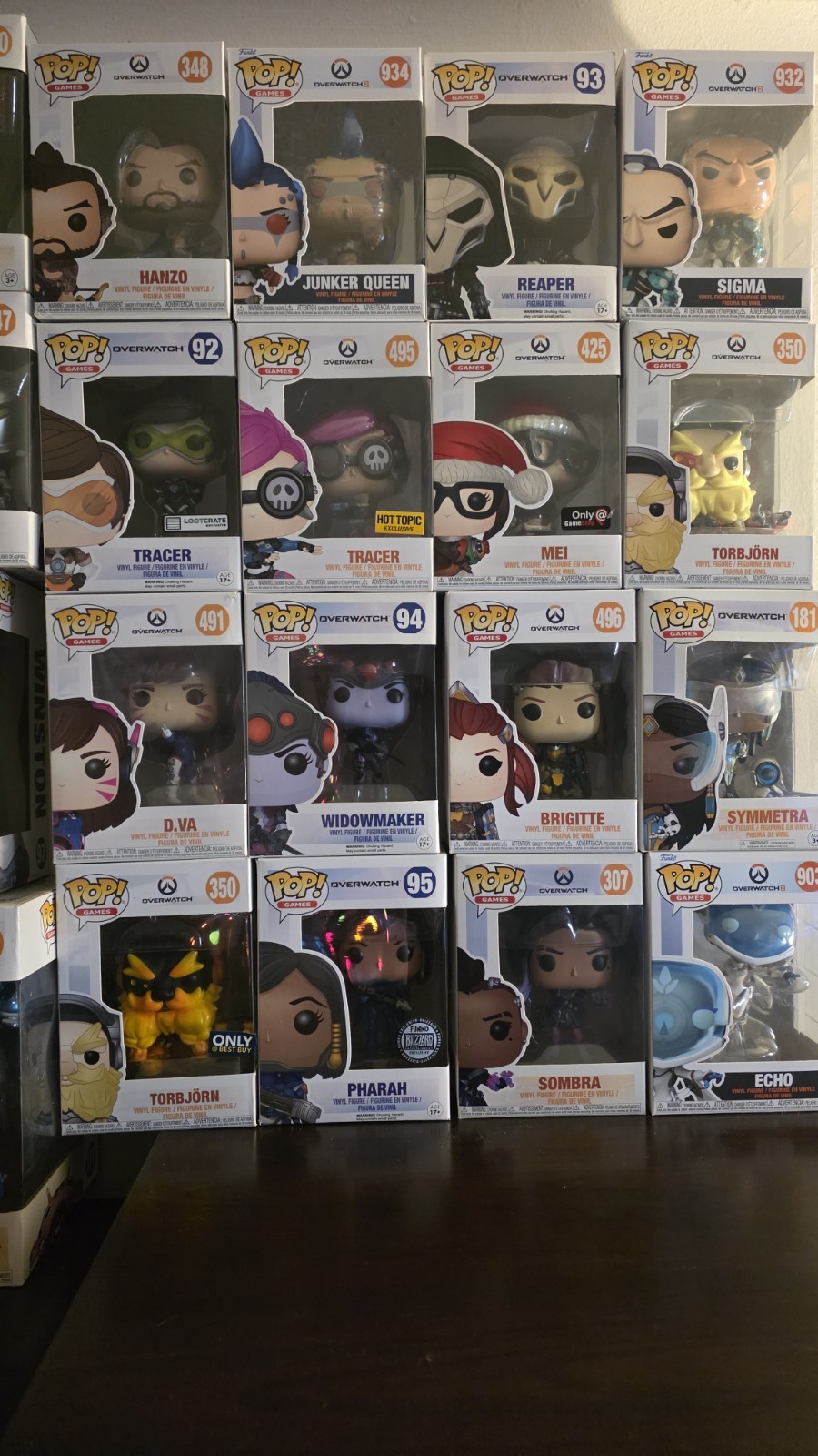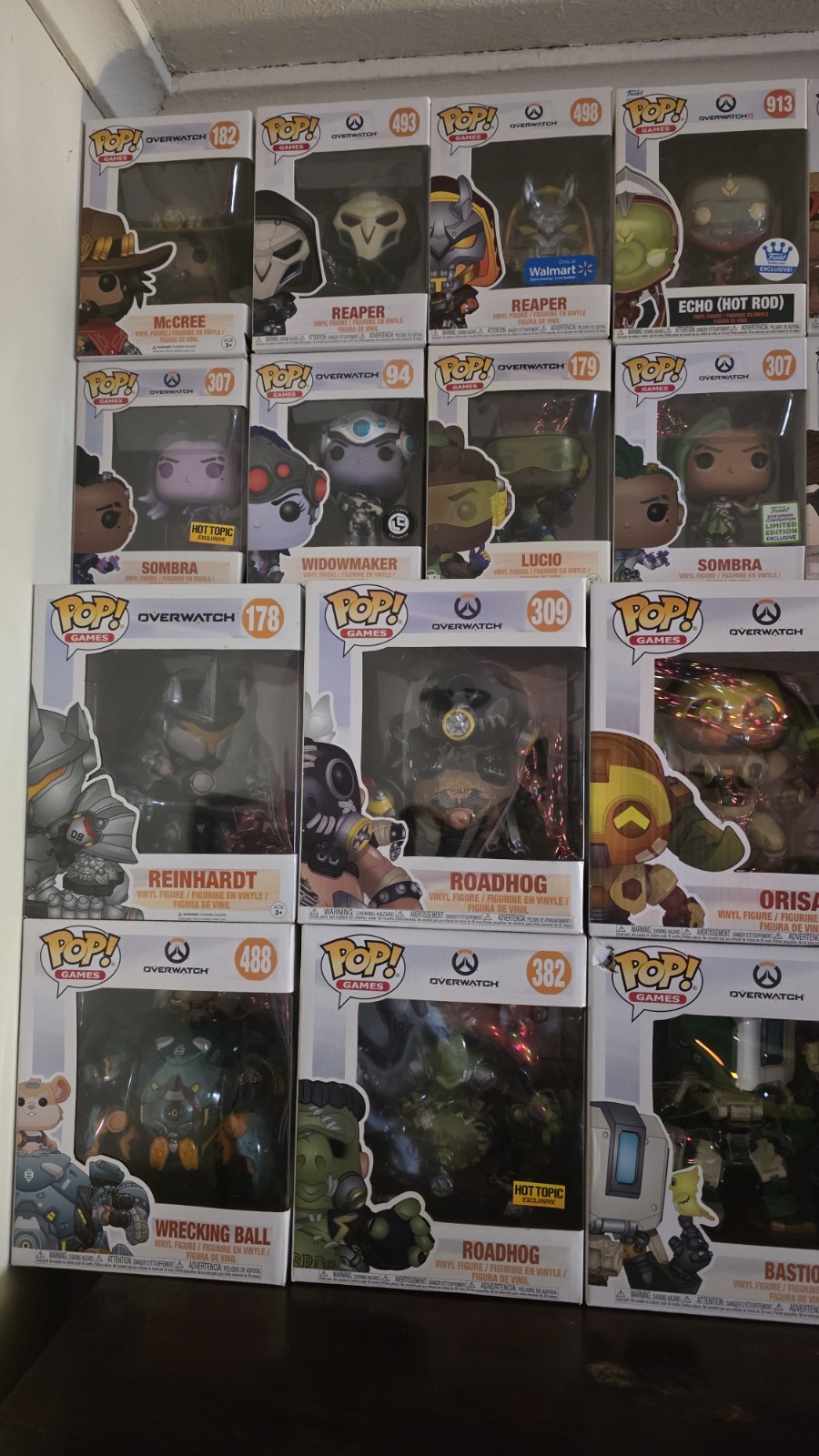 Overwatch Collection Please look below for any specific Characters, Variants or Special Editions - ALL IN GREAT CONDITION, UNLESS STATED OTHERWISE. - FOR INDIVIDUAL PICTURES, MSG ME! - Prices may be negotiable. NO LOWBALLS Reinhardt170 - Regular184 - Best Buy Excl.400 - 2018 Fall Funk Convention Excl. Dva W/Mek177 - Regular177- Blizzard Excl. (Carbon Fiber)177 - Walmart Excl. (Blueberry) Roadhog309 - Regular382 - Hot Topic Excl. Orisa352 - Regular360 - GameStop Excl. Wrecking Ball (Hampter)488 - Regular Winston97 - Overwatch Regular931 - Overwatch 2 Regular Bastion489 - Regular (This Box Does Have Damage to the Top Left Corner) Reaper93 -Regular93 - Blizzard Excl. (White)93 - Box Lunch Excl. (Glow in the Dark)493 - Regular498 - Walmart Excl. 502 - Blizzard Excl. (Pumpkin Skin)902 - Overwatch 2 Regular Sombra307 - Regular307 - 2019 Spring Funko Convention Excl. 307 - Hot Topic Excl. Ana349 - Regular359 - Amazon Excl. McCree (Not Cassidy) 182 - Regular182 - Game Stop Excl.516 - 2019 Summer Funko Convention Excl. Cassidy (Not McCree)904 - Regular Echo903 - Regular913 - Funko Excl. (Hot Rod) D.va491 - Regular Brigitte496 - Regular Widowmaker94 - Regular94 - Loot Crate Excl. Mei180 - Regular183 - Hot Topic Excl.425 - Game Stop Excl. Hanzo348 - Regular Tracer92 - Regular92 - Loor Crate Excl.92 - ThinkGeek Excl. (Posh)424 - Game Stop Excl.495 - Hot Topic Excl. Sigma932 - Regular Soldier 7696 - Regular *Looks like glue is wearing off on the left seam of the box)346 - 2018 Summer Funko Convention Excl. (Grillmaster) Junker Queen934 - Regular Symmetra181 - Regular *Plastic and cardboard are starting to separate on the front panel Pharah95 - Blizzard Excl. (Carbon Fiber)95 - Blizzard Excl. (Regular)95 - 2017 Emerald City Comicon Excl. *This Sticker is a VERY Rare version of the ComiCon sticker494 - Regular Genji347 - Regular347 - Target Excl. Torbjorn350 - Regular350 - Best Buy Excl. Lucio179 - Regular933 - Overwatch 2 Regular Junkrat308 - Regular383 - Box Lunch Excl. (Junkenstien) Mercy304 - Regular304 - Game Stop Excl. Kiriko935 - Regular Moria490 - Regular Doomfist351 - Regular Ashe441 - Regular Zenyatta305 - Regular Zarya306 - Regular Hanzo & Genji 2 Pack2019 E3 Limited Edition Roadhog & Junkrat 2 PackBlizzard Excl. Want to sell the lot in full, willing to entertain serious offers. May be willing to split off some of them into smaller lots but would prefer not to. Message me for specific pic's if needed.