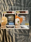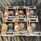 Funko Pop! IT / Pennywise bundle includes: 1) Pennywise (with boat) #472 2) Pennywise (with teeth) #473 FYE exclusive 3) Pennywise (with wig) #474 - Walmart exclusive 4) Pennywise (with ballon) #475 - Hot Topic exclusive 5) Pennywise (with spider legs) #542 6) Pennywise (with wrought iron) #544 FYE exclusive All these Funko Pops are in very good condition, make to check out the pictures. There aren’t any tears or damage done to their boxes, as far as I can tell. Also, they’ve never been taken out of their boxes. All these Funko Pops are sold as is.