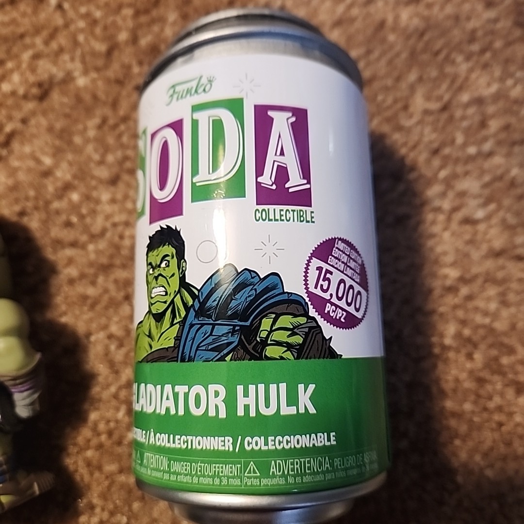 The Funko Vinyl Soda: Marvel Gladiator Hulk Common is a collectible vinyl figure from the Marvel franchise. This figure features the character of the Gladiator Hulk from the movie Gladiator, and is part of the Soda product line by Funko. Packaged in its original packaging, this figure is a common edition, making it more easily obtainable for collectors. Perfect for fans of Marvel and Funko collectibles, this item is a must-have for any enthusiast of unique and detailed vinyl figures.