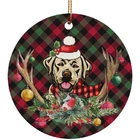 Funny Labrador Dog With Deer Anlters Plaid Pattern Ornament Gift Decor Hanging
