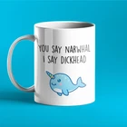 Funny Personalised Mug You Say Narhwal I Say Dickhead Product Details.. This high quality 11oz. ceramic white mug has a premium hard coat that provides crisp and vibrant color reproduction sure to last for years. Perfect for all hot & cold beverages. The highest quality printing possible is used. It will never fade no matter how many times you wash it. Material: 100% Ceramic. Print both sides. Dishwasher and Microwave Safe. High Gloss + Premium White Finish. Printed in the U.S.A. Personalized & Custom. We support personalized and custom mug to add custom, when placing an order, you can add notes to the "order note" in shipping address section. Also you can contact us directly via message. Shipping Info. Ready to ship in 1 to 2 business days, All products are made-to-order and proudly printed in the United States. Shipped by USPS and DHL, You will receive your order in 5-7 days. Replace & Refund. All products are defective during shipping broken, chipped will be replaced free of charge. You are not satisfied with the product, we will refund 100% money to you. If any other issues arise, please do not hesitate to message, we would be more than happy to assist you.