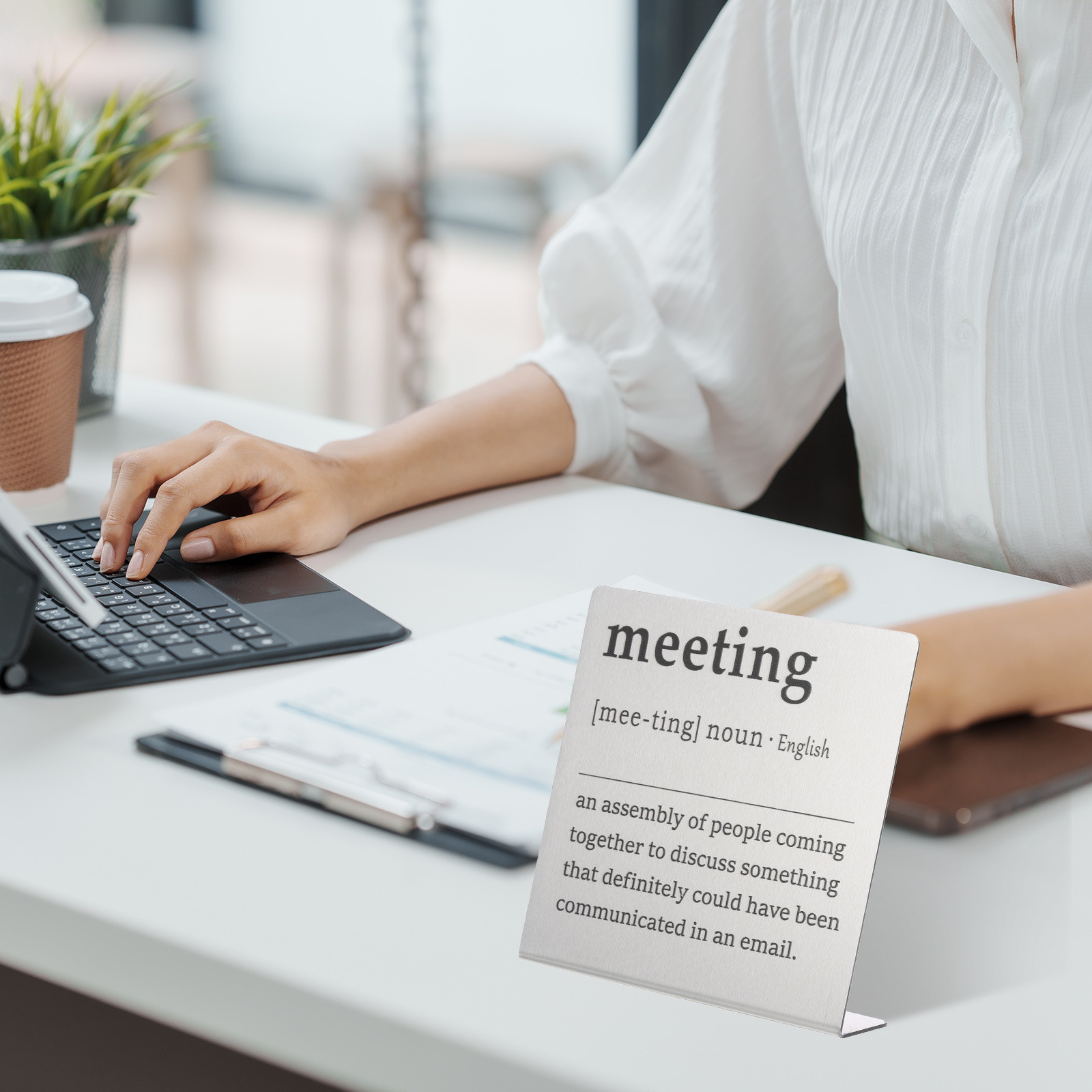 Document MULTIPURPOSE - Funny desk decoration signs use humorous sentences to inspire smile and liven up the office atmosphere, bringing personality and fun to any workspace. Perfect for birthdays, events, home, and office decorationWHAT YOU GET - 1 x Funny office desk decor sign. And their sizes are: 10cm x 2.3cm x 10cm / 3.9inch x 0.9inch x 3.9inch(L*W*H); Material: Stainless steel; Color: Silver; Style: meetingRELIABLE MATERIAL - The funny desk decoration sign is made of stainless steel, which is strong and not easy to deform, waterproof and rust-proof, and durable. It is small in size and easy to place or move on the desk, and it does not take up too much space. The interesting title content has both decorative effects and brings fun.WIDELY USED - Funny office desk decor sign has a wide range of applications. It can be placed on the desk to decorate and bring fun to busy coworkers. It can be placed on bookshelves and wall cabinets to decorate the corners of the home. It can also be given to friends, colleague as interesting gifts.KINDLY NOTE - Please pay attention to the style and size of the title before purchasing Funny Desk Sign, Funny Nameplate, Silver (meeting) MULTIPURPOSE - Funny desk decoration signs use humorous sentences to inspire smile and liven up the office atmosphere, bringing personality and fun to any workspace. Perfect for birthdays, events, home, and office decoration WHAT YOU GET - 1 x Funny office desk decor sign. And their sizes are: 10cm x 2.3cm x 10cm / 3.9inch x 0.9inch x 3.9inch(L*W*H); Material: Stainless steel; Color: Silver; Style: meeting RELIABLE MATERIAL - The funny desk decoration sign is made of stainless steel, which is strong and not easy to deform, waterproof and rust-proof, and durable. It is small in size and easy to place or move on the desk, and it does not take up too much space. The interesting title content has both decorative effects and brings fun. WIDELY USED - Funny office desk decor sign has a wide range of applications. It can be placed on the desk to decorate and bring fun to busy coworkers. It can be placed on bookshelves and wall cabinets to decorate the corners of the home. It can also be given to friends, colleague as interesting gifts. KINDLY NOTE - Please pay attention to the style and size of the title before purchasing Hot Item Payment 1.We accept eBay payment . 2.Payment must be received within 7 business days of auction closing. Shipping 1.We ship to your eBay or Paypal address. Please make sure your eBay and Paypal address is correct before you pay. 2.Items will be shipped within 1-3 business day when we received payment. 3.Delivery time depends on destination and other factors. Description Policy Funny Desk Sign, Funny Nameplate, Silver (meeting) MULTIPURPOSE - Funny desk decoration signs use humorous sentences to inspire smile and liven up the office atmosphere, bringing personality and fun to any workspace. Perfect for birthdays, events, home, and office decoration WHAT YOU GET - 1 x Funny office desk decor sign. And their sizes are: 10cm x 2.3cm x 10cm / 3.9inch x 0.9inch x 3.9inch(L*W*H); Material: Stainless steel; Color: Silver; Style: meeting RELIABLE MATERIAL - The funny desk decoration sign is made of stainless steel, which is strong and not easy to deform, waterproof and rust-proof, and durable. It is small in size and easy to place or move on the desk, and it does not take up too much space. The interesting title content has both decorative effects and brings fun. WIDELY USED - Funny office desk decor sign has a wide range of applications. It can be placed on the desk to decorate and bring fun to busy coworkers. It can be placed on bookshelves and wall cabinets to decorate the corners of the home. It can also be given to friends, colleague as interesting gifts. KINDLY NOTE - Please pay attention to the style and size of the title before purchasing Hot Item Payment 1.We accept eBay payment . 2.Payment must be received within 7 business days of auction closing. Shipping 1.We ship to your eBay or Paypal address. Please make sure your eBay and Paypal address is correct before you pay. 2.Items will be shipped within 1-3 business day when we received payment. 3.Delivery time depends on destination and other factors.