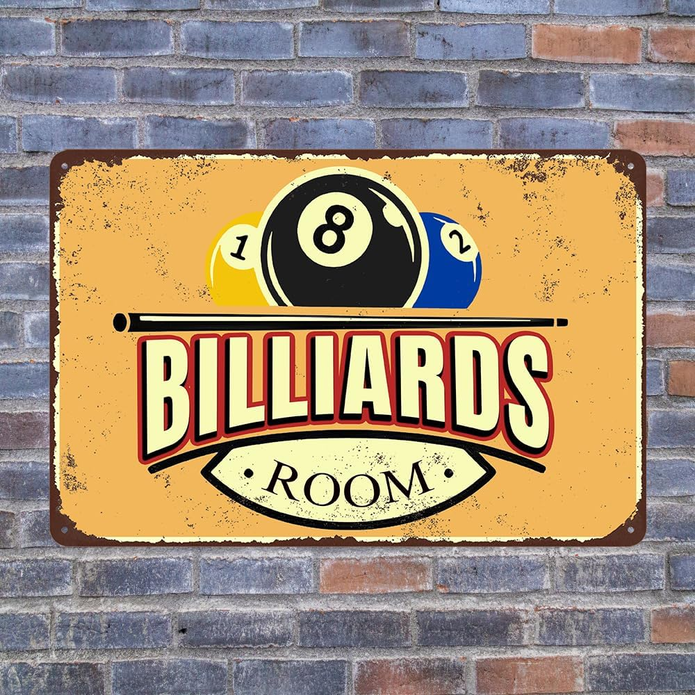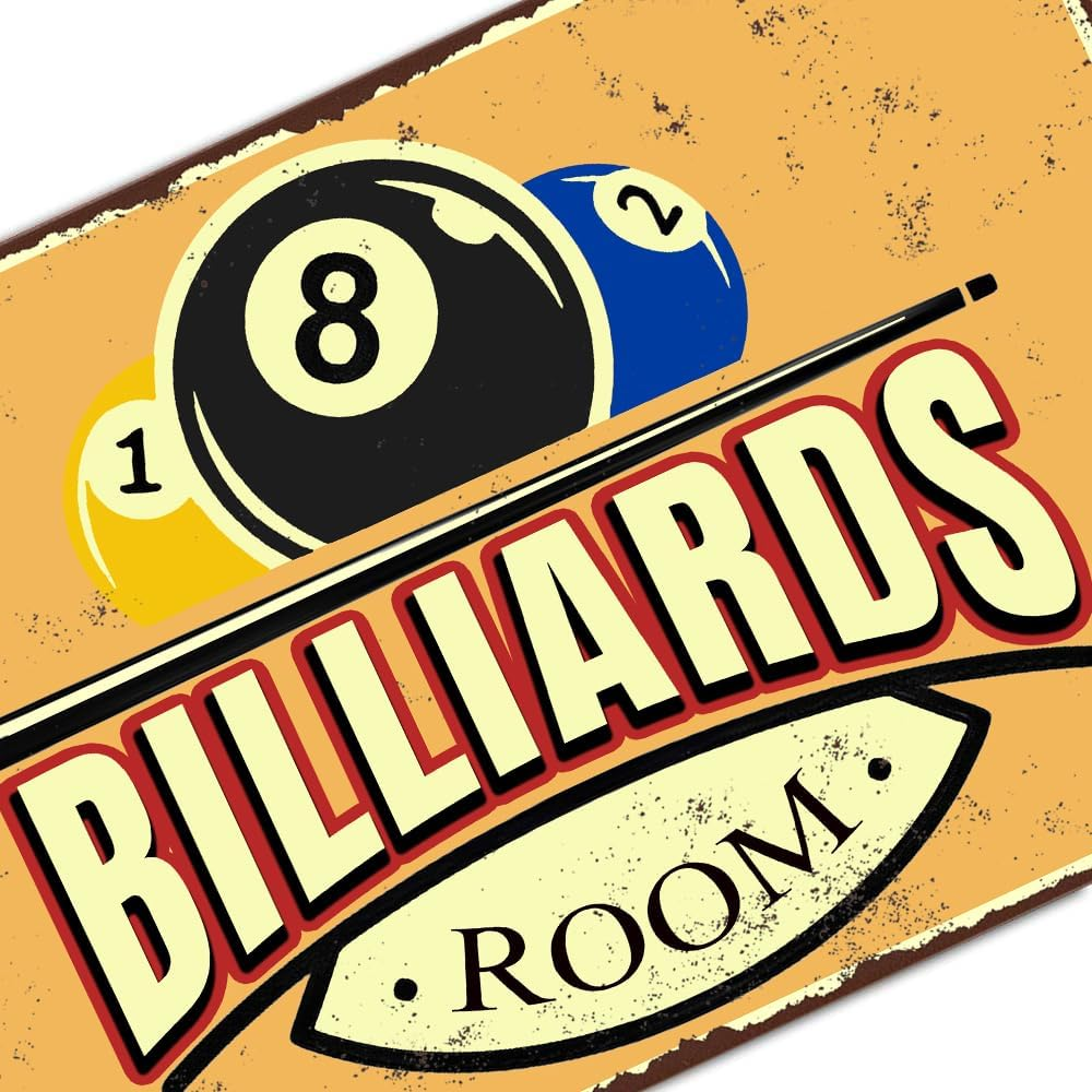 Billiards Room Decor Vintage Metal Tin Sign Size: 8x12 Inches (20x30 Cm). You Will Receive 1 Be printed Billiards Tin Sign Personalized Wall Art Signs Simple And Elegant, And A Humorous Design That Will Bring Laughter To You And Your Friends And Loved Ones! Funny Billiards Tin Sign Usage Scenarios: Vintage Metal Tin Sign Vintage Billiards Poster Suitable For You To Hang Directly On The Wall Or Door Of Your Room, For Kitchen, Dining Room, Living Room, Bedroom, Bathroom, Office, Bar, Cafe, Club, Dorm, Man Cave, Garage, Garden, Street, Hallways, Road, Garag Wall Art Decoration. To Add More Charm To Your Life. Billiards Gifts For Men: Pool Table Accessories Bedroom Sports Signs Inspirational Gifts, Artistic Decoration, Filled With Your Sincere Love, Ideal For Friends, Boys, Girls, Men, Women, Birthday, Anniversary, Christmas, Mother's Day, Father's Day, Thanksgiving, Great Gift For Halloween, Valentine's Day, Easter. Billiards Metal Sign Easy To Hang: Bedroom Sports Signs Funny Metal Tin Sign Inspirational Posters Wall Decor. Each Comes With 4 Pre-Drilled Holes So You Can Install Them Right Away. Just Nail It, Stick It With A Command Bar, Or Hang It With A String (Installation Tools Not Included). Plus, Rolled Edges And Rounded Corners Keep You Safe. These Signs Are Sure To Add Character And Style. Lifetime Satisfaction Service: We Pride Ourselves On Providing Quality Service To Our Customers And Provide Reliable After - Sales Return And Exchange Services. If You Have Any Questions, Please Do Not Hesitate To Contact Us. Billiards Room Decor Funny Billiards Tin Sign Pool Table Accessories Vintage Billiards Poster Billiards Metal Sign Billiards Gifts For Men Billiard Hall Wall Art Decoration 8x12inch