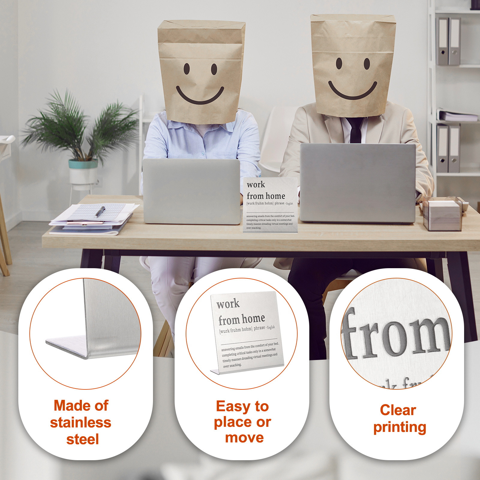 Document MULTIPURPOSE - Funny desk decoration signs use humorous sentences to inspire smile and liven up the office atmosphere, bringing personality and fun to any workspace. Perfect for birthdays, events, home, and office decorationWHAT YOU GET - 1 x Funny office desk decor sign. And their sizes are: 10cm x 2.3cm x 10cm / 3.9inch x 0.9inch x 3.9inch(L*W*H); Material: Stainless steel; Color: Silver; Style: work from homeRELIABLE MATERIAL - The funny desk decoration sign is made of stainless steel, which is strong and not easy to deform, waterproof and rust-proof, and durable. It is small in size and easy to place or move on the desk, and it does not take up too much space. The interesting title content has both decorative effects and brings fun.WIDELY USED - Funny office desk decor sign has a wide range of applications. It can be placed on the desk to decorate and bring fun to busy coworkers. It can be placed on bookshelves and wall cabinets to decorate the corners of the home. It can also be given to friends, colleague as interesting gifts.KINDLY NOTE - Please pay attention to the style and size of the title before purchasing Funny Desk Sign, Funny Nameplate, Silver (work from Home) MULTIPURPOSE - Funny desk decoration signs use humorous sentences to inspire smile and liven up the office atmosphere, bringing personality and fun to any workspace. Perfect for birthdays, events, home, and office decoration WHAT YOU GET - 1 x Funny office desk decor sign. And their sizes are: 10cm x 2.3cm x 10cm / 3.9inch x 0.9inch x 3.9inch(L*W*H); Material: Stainless steel; Color: Silver; Style: work from home RELIABLE MATERIAL - The funny desk decoration sign is made of stainless steel, which is strong and not easy to deform, waterproof and rust-proof, and durable. It is small in size and easy to place or move on the desk, and it does not take up too much space. The interesting title content has both decorative effects and brings fun. WIDELY USED - Funny office desk decor sign has a wide range of applications. It can be placed on the desk to decorate and bring fun to busy coworkers. It can be placed on bookshelves and wall cabinets to decorate the corners of the home. It can also be given to friends, colleague as interesting gifts. KINDLY NOTE - Please pay attention to the style and size of the title before purchasing Hot Item Payment 1.We accept eBay payment . 2.Payment must be received within 7 business days of auction closing. Shipping 1.We ship to your eBay or Paypal address. Please make sure your eBay and Paypal address is correct before you pay. 2.Items will be shipped within 1-3 business day when we received payment. 3.Delivery time depends on destination and other factors. Description Policy Funny Desk Sign, Funny Nameplate, Silver (work from Home) MULTIPURPOSE - Funny desk decoration signs use humorous sentences to inspire smile and liven up the office atmosphere, bringing personality and fun to any workspace. Perfect for birthdays, events, home, and office decoration WHAT YOU GET - 1 x Funny office desk decor sign. And their sizes are: 10cm x 2.3cm x 10cm / 3.9inch x 0.9inch x 3.9inch(L*W*H); Material: Stainless steel; Color: Silver; Style: work from home RELIABLE MATERIAL - The funny desk decoration sign is made of stainless steel, which is strong and not easy to deform, waterproof and rust-proof, and durable. It is small in size and easy to place or move on the desk, and it does not take up too much space. The interesting title content has both decorative effects and brings fun. WIDELY USED - Funny office desk decor sign has a wide range of applications. It can be placed on the desk to decorate and bring fun to busy coworkers. It can be placed on bookshelves and wall cabinets to decorate the corners of the home. It can also be given to friends, colleague as interesting gifts. KINDLY NOTE - Please pay attention to the style and size of the title before purchasing Hot Item Payment 1.We accept eBay payment . 2.Payment must be received within 7 business days of auction closing. Shipping 1.We ship to your eBay or Paypal address. Please make sure your eBay and Paypal address is correct before you pay. 2.Items will be shipped within 1-3 business day when we received payment. 3.Delivery time depends on destination and other factors.