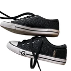 Elevate your activewear and casual outfits with these G by Guess Lace Up Fashion Sneakers in black. The studded rubber toe and lace-up closure add a touch of edginess to the chic iconic statement design. The sneaker boasts a low-top shoe shaft style, making it perfect for any performance or activity. Crafted from textile fabric, these sneakers are lined, cushioned, and padded for ultimate comfort. The non-slip, vegan, and eco-friendly features make them a perfect choice for any season, be it winter, summer, fall, or spring. These G by Guess Casual Sneakers are a must-have for any designer, 80s, 90s, or sports-themed outfit.