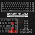 GAMENOTE 60% Mechanical Keyboard, Wired Gaming Keyboard LED Backlit Mini Compact Keyboards Blue Switch 71 Keys Type-C for PC Gamer Laptop Open Box New Gamenote 60% Compact Mechanical Gaming Keyboard 71keys with Rainbow Backlit for PC Laptop 1. Colourful & changeable lighting with 17 different backlit modes ( Fn + ] ). 2. 11 multimedia shortcut key combinations ( Fn + Q/W/E/R/T/Y/U/I/O/P/[ ). 3. Keeping the derection keys and deleted keys, great for typing and playing games. 4. User-friendly design, no driver needed, plug and play. Features & details 【Compact 60% Keyboard】The mechanical keyboard is 71 keys, a perfect size, to provide more space to your desktop and mouse movement. Attaching with detachable USB type-c cable that make it portable and you could easily take it to game or work in wherever you want 【Blue Switch Mechanical Keyboard】 With all-metal panel and floating keys design, the keys of the tkl keyboard trigger sensitively and response fastly. All 71 keys have individual switches with full n-key rollover and anti-ghosting. Providing great durability and stable performance. 【Rainbow Backlit Keyboard】This computer keyboard is with default 17 kinds of backlight mode(FN+] to change modes), creating a super cool game atmosphere. Double-shot keycaps with clear bright backlight (brightness adjustable), easy to find the correct letter key even in dark. 【Complete Functionality】Though this gaming keyboard is in small layout and tenkeyless, but it maintains the most functions of full-key keyboard: The " brower, email, computer, calculator" keys, multi-media keys, direction keys, delete key. Great for gaming and daily use. 【Broad Compatibility】This wired 60% gaming keyboard is plug&play, no need driver. Compatibility with Windows 2000/Vista/Win7/Win8/Win10/MAC/Linux for gaming personal computer.