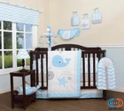 Transform your baby's nursery into an ocean paradise with this GEENNY Wonderful Whales Boy Baby 12 Piece Nursery Decor & Crib Bedding Set. The set is adorned with charming whales and sea life characters. The blue, gray and white color and sea life character family theme will add a touch of adventure to your baby's sleep space. This bedding set is perfect for parents who want to create a cozy and comfortable environment for their little ones. The set is designed to fit most standard cribs and is made in China with high-quality materials. Give your baby the gift of a good night's sleep with this GEENNY Wonderful Whales Boy Baby 12 Piece Nursery Decor & Crib Bedding Set. Mobile and matching lamp shade may be available for this set. Please check before leaving my store! This GEENNY nursery decor and crib set includes following 12 pieces: 1 - Crib Quilt (36 x 45") 1 - Fitted Crib Sheet (28 x 52") 1 - Crib Skirt ( 28 x 52") 2 - Decorative Roller Pillows 2 - Window Valances (16 x 55") 3 - Piece Fabric Wall Art 1 - Fabric Toy Storage Bag 1 - Diaper Stacker This listing is for a brand new 12 piece boutique Geenny crib set with all the core items that you will need for baby's nursery. This set is made to fit all standard cribs and toddler beds and is made by Geenny designs, who are well known for their complete nursery series products designs. All bundled pieces are in brand new zippered, carrying bag. These are the real beautiful new styles that often have retail prices over $200.00.