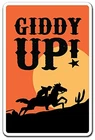 Get a fun novelty sign for your home and office and show off your sense of humor. Looking for a fun , hilarious sign to hang on your cubicle or in your man cave? If so, Sign Mission has all the cute, funny, hilarious, and even work-related novelty signs you're looking for! Something for Everyone We've got a wide range of American-made signs just like this that will tickle your funny bone, make others smile, or even show off your snarky attitude. Made To Last Made from a special plastic designed to hold up to a beating, This sign can bend with out eking and will never chip or crack, the colorful lettering will last a indoors and up to 4 years in the sun for outdoor use. Product Details: Pre-Drilled Mounting Holes Indoor and Outdoor Use Rust and Fade Resistant - Sided Dimension: 11 x 17Made in the USA Outdoor Durable Plastic and Premium-Ink Click Add to Cart to get your Giddy Up sign today and enjoy a good laugh each time you pass by! Sign Size: 11" X 17" Perfect Gift – Good for decorating a work space or hanging in a den, this novelty sign makes a great gift for anyone Quick & Easy Mount – Comes with pre-cut mounting holes for hanging Indoor/Outdoor Use – Printed with ultra durable inks for a scratch resistant finish that will last for years Proudly Made In The USA – Buy with confidence from an American owned and operated company! Sign Mission Items are produced in our state-of-the-art facility in West Palm Beach, Florida