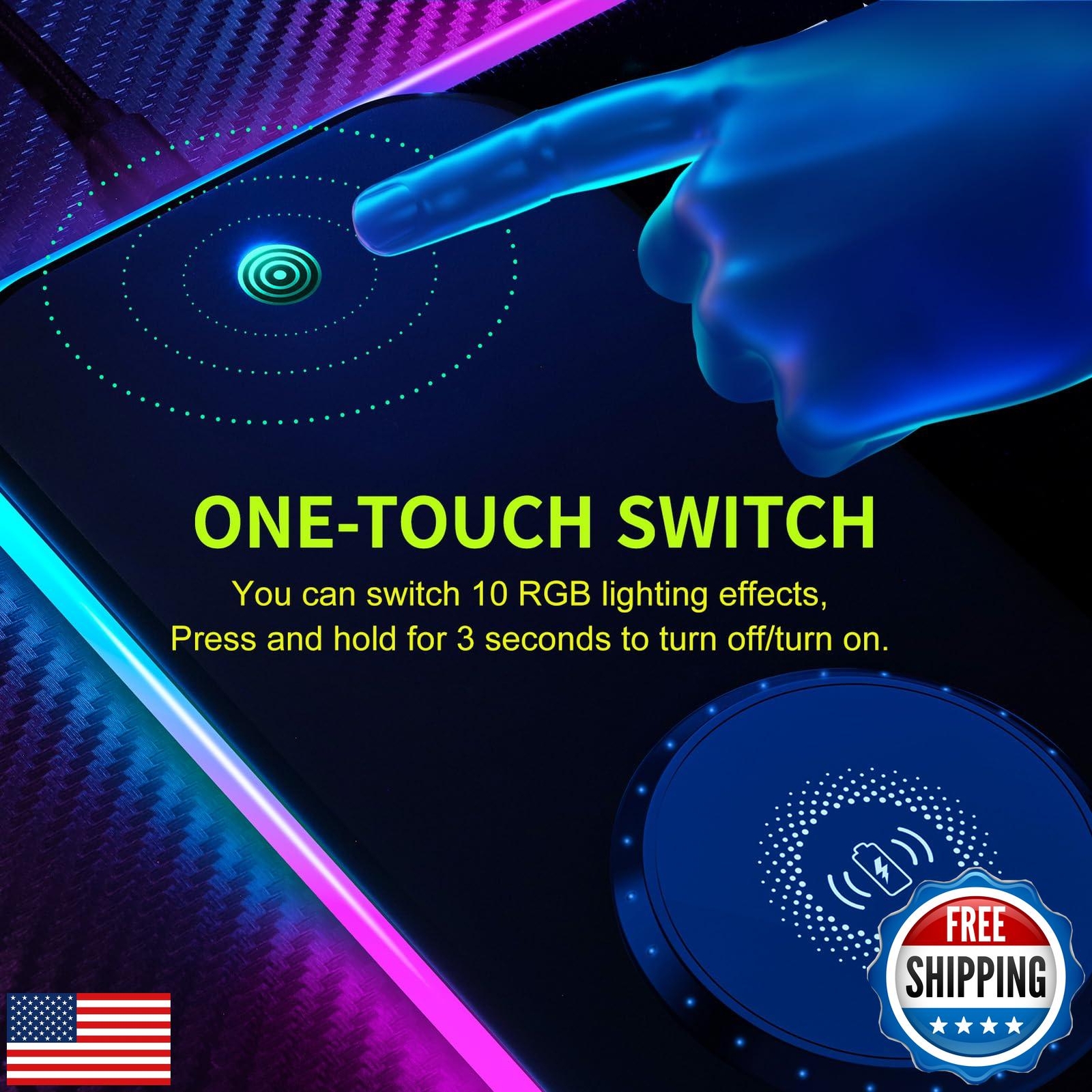 This RGB mouse pad is a game-changer! The vibrant 10-color lighting adds a cool vibe to my setup, and the wireless charging works like a charm. The non-slip base keeps it sturdy, and the huge size fits my keyboard and mouse perfectly. Super stylish and functional—highly recommend!