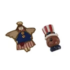This set includes 2 rustic, country style pins. One is a resin, Uncle Sam bear, made to look like carved wood. The other is a decorated foam brooch. Both are in good condition, no issues