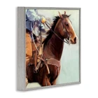 Dimensions: 24 x 1.5 x 24 Framed Framed Giclee Product Sizes Include 12"x12", 17"x17", and 24"x24". Framed Giclee Products have a 1.5" Depth. Wall Art is Ready to Hang with Hardware Free Hanging. No installation required. For Easy Set Up Lean or Layer Artwork on Shelf or Against Wall. Our giclée prints are carefully mounted on a durable MDF backing, and then perfectly finished in a 1.5 inch thick woodgrain frame. Mounted frame colors include black, gray farmhouse and white. Made In USA. Artwork Relates To: Animal, Equestrian, Horse, Mammal, Person, Stallion, Colt Horse, Painting, Cowboy Design by Nina Blue