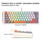 Gaming Mechanical Keyboard Blue Backlits 63 Key Corded Office Keyboard LED Game Features: The 63 key mechanical keyboard is both lightweight, making it a for users with limited desktop space. It not only provides a comfortable input but also effectively save valuable desktop space Key-wire separation providing great convenience for users when carrying the keyboard outdoors. In addition, also avoids the problem of cable organization, allowing users to keep their cable. Use advanced two injections molding keycap technology, this keyboard's keycaps is bright colored. Featuring with 63 responsive keys and LED backlighting for immersive gaming environment. This mechanical keyboard supports multiple computer systems. This mean that users can enjoy fast and accurate input on different systems without worrying about compatibility Specifications: Volumes adjustment:FN+R key is volumes reduction, FN+T key is volumes increase, FN+Y key is mute; 5 speeds adjustable; bright backlight cannot be adjusted; FN+O and FN+L adjust the backlight brightness, 5 levels adjustable; Compound function key switches: FN+2@ key: FN+4$ key: F4 FN+8 key: F8 FN+0) key: F10 FN+ =+ key: F12 Product specifications: Interfaces Type: USB Product solution:SK9708 Number of keys:63 Button life:10 million times or more Operating Voltages:5.0V+5% Working current:150mA Product line length:Approx.170cm/66.93inch Color Gray/Gray Size:Approx.29.2x10.2x4cm/11.49x4.02x1.57inch Package Includes: 1Pc Mechanical Keyboard note: 1.Please allow 1-2cm errors due to manual measurement, making sure that you not mind before order. 2.Due to the differences between different monitors, the picture may not reflect the actual of the item.