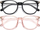 Gaoye 2 Pack Blue Light Blocking Glasses, Retro Round Eyewear Frame Anti Eyestrain Computer Glasses for Women Men - GY1688 (Black+Pink)