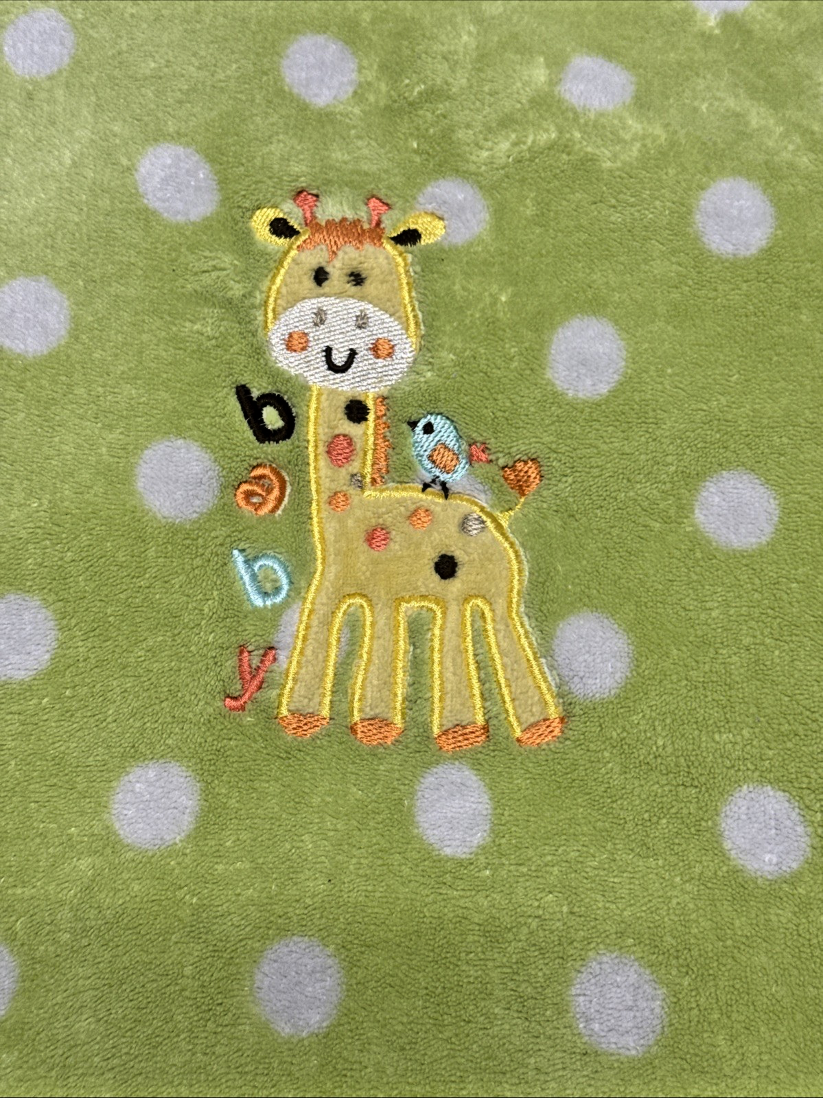 Garanimals Blanket Green White Polka Dots Giraffe Bird Polyester Soft Plush Pre owned in good condition One of the eyes is missing stitches.....see last photo See all photos
