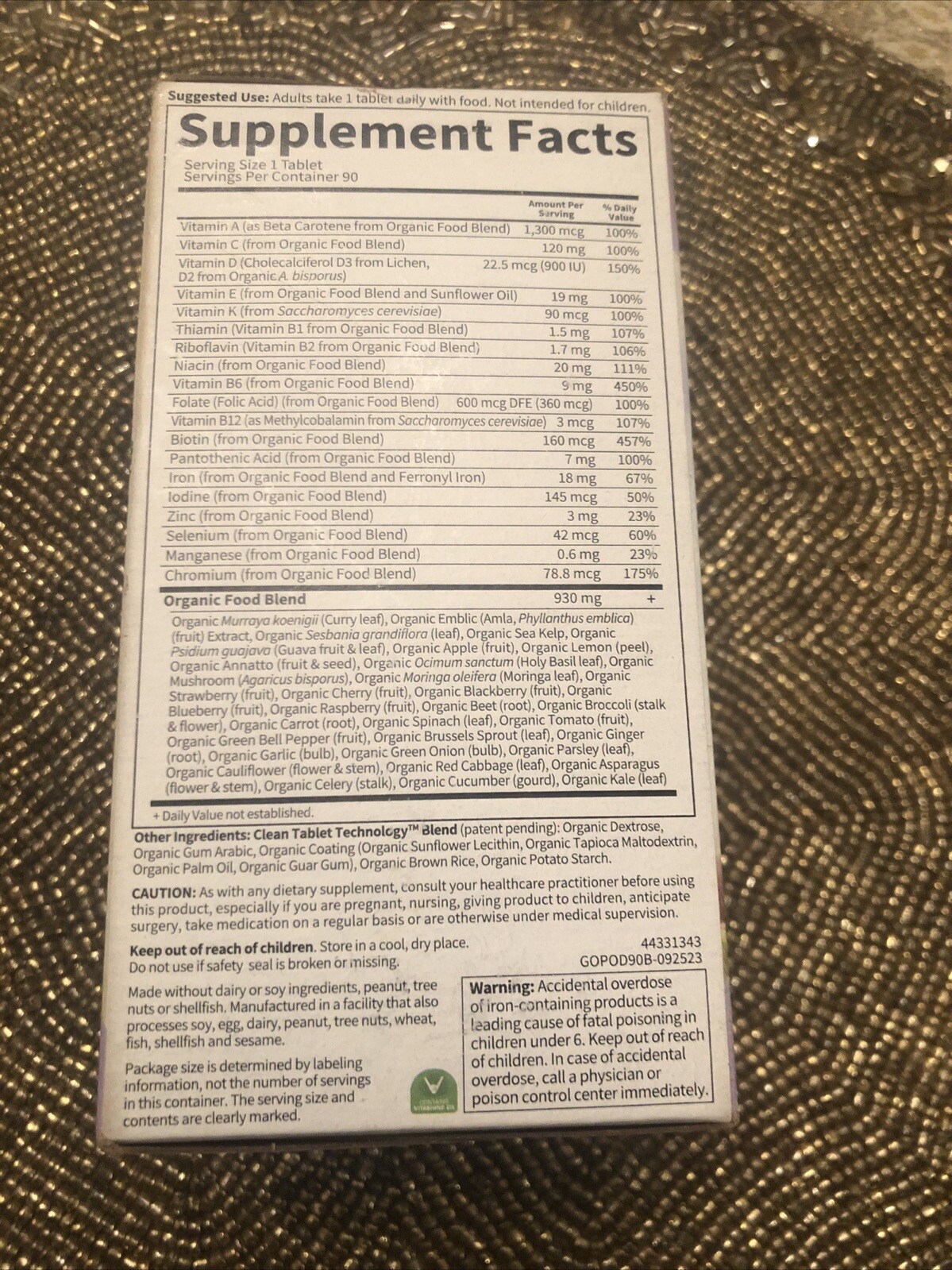 Garden of Life Mykind Organics Prenatal Once Daily 90 Vegan Tabs BNIB EXP 12/26.