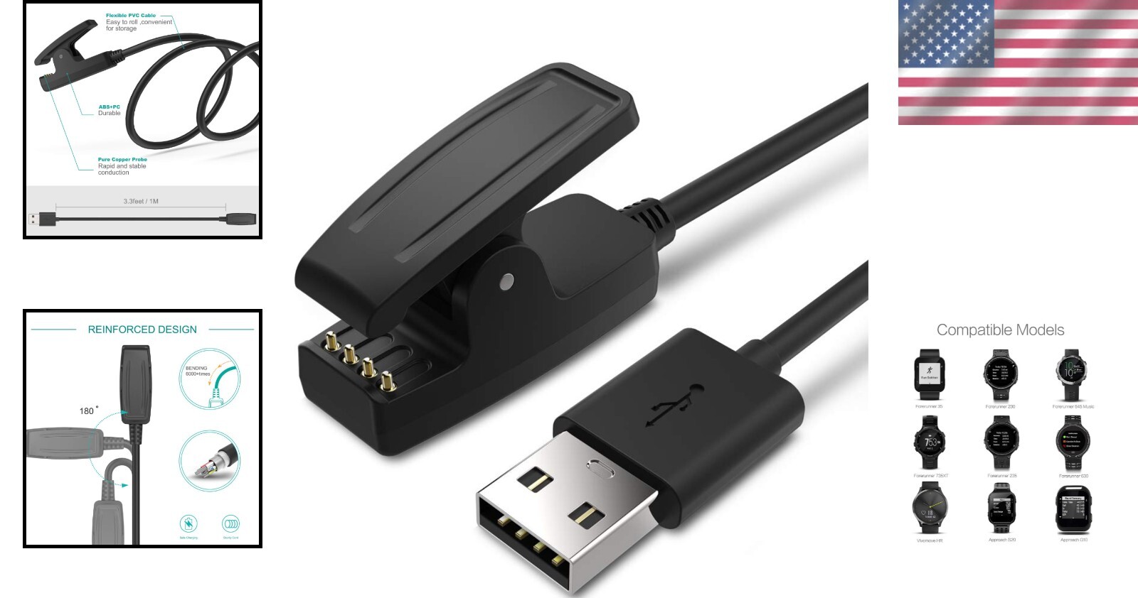 Charger Compatible with Garmin Forerunner 35 35J 230 235 630 645 Music 735XT ‹ › ‹ › ‹ › ‹ › ‹ › ‹ › ‹ › ‹ › ‹ › ‹ › ‹ › Charger Compatible with Garmin Forerunner Series Wide Compatibility Perfectly compatible with Garmin Forerunner models: 35, 35J, 230, 235, 630, 645 Music, 735XT Also works with Approach G10 S20, Vivomove HR, and ForeAthlete 35J Smartwatch Durable & Quality Constructed with high-quality wire for exceptional charging experience. Robust ABS + PVC material combined with copper wire ensures stable current transmission. Fast Charge, Stable Performance Seamlessly connects to a power adapter, car adapter, power bank, and laptop. Enjoy a high-efficiency and stable charging experience wherever you are. Safe Charging Features an integrated voltage regulator and PTC for optimal protection against overcurrent. Built-in safeguards protect your device from damage during charging, ensuring peace of mind. Compact & Lightweight Perfectly portable design that fits seamlessly into your travel essentials. Ideal for travelers and business users who require efficiency on the go. Note: Remember to charge your smartwatch before the battery runs out! Why choose our Charger? Elevate your Garmin experience with our top-of-the-line charger, designed specifically for compatibility across a wide range of Garmin devices. Crafted from the highest quality materials, it ensures a safe and efficient charging process, giving you the reliability you deserve while on the move. Never worry about low battery levels again, and stay connected with the power you need at your fingertips. Don't miss out; grab your Garmin-compatible charger today and embark on your adventures with confidence! Shipping Free & Fast Shipping - We offer free shipping to most of the USA with a normal delivery time of 3-7 days. However, due to the current situation, additional delivery time (up to 3 weeks) may be required for some items. Alternative Carriers - We may use alternative carriers (e.g. USPS, FedEx, UPS, etc.) to ensure your package arrives safely and on time. Due to the use of multiple carriers, we are unable to provide a tracking number automatically. Handling Time - Orders are processed and shipped within 1-2 business days of receiving cleared payment. Shipping Restrictions - Shipping to Alaska, Hawaii, Puerto Rico, Guam, and other US territories may incur shipping charges or delivery restrictions. Please contact us before ordering, or your order can be refunded/cancelled. State Restrictions - There may be restrictions based on your state of purchase. For example, certain items may not be shipped to California due to state regulations. Contact for Tracking Updates - If you require tracking updates or have any concerns about the delivery of your order, please feel free to contact us, and we will be happy to assist you. Return 30-Day Hassle-Free Returns - We want you to be completely satisfied with your purchase. If you are not, you can return the item within 30 days of receiving it for a full refund or exchange. Easy Return Process - To start a return, simply contact us and we will provide you with a prepaid return shipping label and detailed instructions. Restocking Fee - There are no restocking fees for returns. However, the buyer is responsible for return shipping costs if the return is not due to a seller's error. Refund Processing Time - Refunds will be processed within 5 business days of receiving the returned item in its condition. Payment We accept all major credit cards, PayPal, and Apple Pay for your convenience. Your payment information is secure and encrypted to ensure a safe and seamless transaction. Please complete your payment within 3 days of purchase to avoid any delays in shipping. Feedback Your feedback is extremely important to us. We strive to provide the best products and customer service possible. If you are satisfied with your purchase, please take a moment to leave us a positive review. If you have any concerns or issues with your order, please contact us before leaving negative feedback. We are committed to resolving any problems and ensuring your satisfaction. Contact Us If you have any questions or concerns, please feel free to out to our customer support team. You can contact us through the eBay messaging system. We are available Monday to Friday, 9:00 am to 5:00 pm EST, and we will do our best to respond to your inquiry within 24 hours. Buy it now and enjoy a pleasant shopping experience! Item Weight: 0.63 ounces Unit Quantity: 1 Package Dimensions LxWxH: 1.97 x 0.79 x 1.18 inches Size: 100 cm Weight: 0.63 ounces Connectivity: USB,USB Type A Items Included: Charging Cable Compatible Model: Approach G10 S20,Vivomove HR,ForeAthlete 35J,For Garmin Forerunner 35,For Garmin Forerunner 35J,For Garmin Forerunner 230,For Garmin Forerunner 235,For Garmin Forerunner 630,For Garmin 735XT,For Garmin Approach G10,For Garmin Approach S20,For Garmin Vivomove HR,For Garmin ForeAthlete 35J Design/Finish: Plain Features: Fast Charge,Stabilizing Performance,Safe Charging,Compact & Lightweight,Stable Performance,Lightweight Design Type: USB Charging Cable Number of Ports: 1 Color: Black Material: ABS + PVC Unit Type: oz