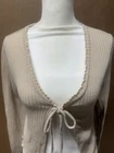 Gaze Tie Front Cardigan Crop Size S Y2K Fairy Feminine Beige Ruffle Ribbed