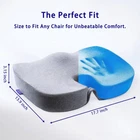 The Gel Infused Seat Cushion, a must-have for your office chair, wheelchair, or car seat. Experience optimal comfort and support during your workday with this premium cushion. Designed for versatility, it can be easily interchanged between different seats, whether it's a rolling executive chair or a traditional desk chair. The Seat Cushion is perfect for both home and office use, ensuring that you can stay productive and comfortable wherever you are. The gel-infused technology provides a cooling sensation, reducing any discomfort caused by sitting for long periods. Crafted with your comfort in mind, this cushion helps alleviate pressure points and promotes proper posture. It's like sitting on a cloud! The high-quality materials used ensure durability, so you can enjoy the benefits of this cushion for years to come. Whether you're working on important projects, attending meetings, or simply relaxing, the Seat Cushion will provide the support you need. Enhanced Comfort: Experience the ultimate comfort with our gel-infused memory foam seat cushion. Its strategically designed coccyx cutout allows your tailbone to float, ensuring even those with sacrum sensitivities can sit for extended periods without discomfort. Say goodbye to back pain and enjoy luxurious seating wherever you go! Breathable Mesh Cover: The cushion is covered in a breathable mesh material that promotes airflow, preventing sweat and heat build-up. The removable cover is also machine washable, making it easy to keep your seat cushion clean and fresh. Ergonomic Design: With its carefully crafted ergonomic design, our seat cushion ensures optimal support and promotes healthy posture. It helps align your spine, reducing strain and allowing you to sit for longer periods without discomfort. Premium quality materials: We use only the finest materials to create our gel seat cushion. The 30 percent higher amount of premium memory foam ensures durability and long-lasting support. You can rely on the cushion to maintain its shape and provide consistent comfort day after day. Temperature-Sensitive Design: Designed with your comfort in mind, our gel seat cushion is sensitive to temperature fluctuations. In colder weather, some users have mentioned that the cushion may become firm and hard. However, once the material warms up, it quickly returns to its soft and supportive state.