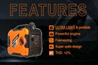 Features 2300 Starting Watts / 1900 Rated Watts Powered by Genkins Commercial class 79cc 4-stroke OHV engine 1.36 Gal Gas tank ensures 8 hours run time at 50% load Total Portable weight at only 47lbs 53-56 dBA ultra quite when it's 13 feet away from your window Easy-to-pull recoil start with ergonomically designed grip Auto shut down when low in oil Built-in easy to read fuel gauge Outlets: one 120V L5-30R outlets, one 120V NEMA 5-20R household outlets with pure sine wave electricity (less than 2% THD) and dual USB adapter. Also includes one accessory RV adapter. Detailed Spec Rated Voltage & Frequency: 120V/60HZ Running VAC Amperage: 15.8A Rated Output: 1900 Watt Max. Output: 2300 Watt Enigine Brand: Genkins G80i Engine Type: OHV, 4-stroke Engine Displacement: 78.5 Bore X Stroke (mm) : 1.8 * 1.9 Engine RPM: 5000 AC Load: 100% Phase: Single Recommended Oil: SJ10W-40 Choke Type: Manuel Fuel Tank - Gasoline: 1.4 Gal Fuel Gauge: Yes. Starting Method: Recoil Low Oil Shutdown: Yes Oil Volume: 0.35 Gal Low Oil Alert Light: YES Compression Ratio: 8.7 Ignition Type: T.D.I Full Load Run Time: 5 1/2 Load Run Time: 8 LCD Hour Meter: No DC Volts: 5V/1A & 5V/2.1A" Weather Protection on Outlets: Yes Circuit Breaker: Yes Muffler: Yes Noise Level: 54 dBA THD: <2% Emissions: EPA Net Weight: 47lbs Gross Weight: 54lbs Assembly Dimensions: 22:18:12 Package Dimensions: 24:22:13