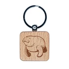 Gentle Manatee Engraved Wood Square Keychain Tag Charm