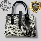 Genuine Black Cowhide Leather Tote Bags Women Shoulder Purse Handbags Lady Bag Colors Pattern may vary slightly as it is 100% original Natural Cow Hide Skin. Description Bag size Width: 14 inches Height: 8 inches Depth: 4 inches Flexible Adjustable Strap Main Compartment 2 zipper Pockets 1st Main Compartment (inside 2 Pockets) 2nd Main Compartment (inside 1 zipper pocket) Colors Pattern may vary slightly as it is 100% original Natural Cow Hide Skin. Introducing our Natural Cow Hair on Leather Tote Bag – a stunning blend of style and substance that will elevate your everyday look. Crafted with genuine, high-quality natural leather, this women's handbag exudes timeless elegance while offering exceptional durability. The contrasting mix of cow hair panelling adds a touch of unique sophistication, making it a must-have accessory for fashion-forward individuals. Whether you need a chic shoulder bag or a spacious shopping companion, our lightweight design ensures comfort without compromising on style. Elevate your fashion game with this versatile and eco-friendly natural leather tote bag. Colors Pattern may vary slightly as it is 100% original Natural Cow Hide Skin. Experience the epitome of luxury with our handcrafted Natural Cow Hair on Leather Tote Bag. Created to charm and inspire, this women's handbag is meticulously crafted from premium natural leather, ensuring longevity and a touch of timeless beauty. The exquisite cow hair detailing further enhances its allure, making it an ideal choice for any occasion. The well-designed shoulder straps offer utmost comfort, allowing you to effortlessly carry your essentials in style. Whether you're heading to the office or embarking on a shopping spree, let this lightweight and versatile tote bag be your fashionable companion. NOTE: Colors may vary slightly from original due to individual monitor color settings and/or light conditions when photographed. Colors Pattern may vary slightly as it is 100% original Natural Cow Hide Skin. Delivery: We'll deliver your order via DHL / FEDEX / USPS at your door step. Returns & Exchanges: Hassle Free Returns and Exchanges. Colors Pattern may vary slightly as it is 100% original Natural Cow Hide Skin.