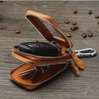 Features: Genuine Leather Material: Our key chaincase is made with a high-quality of genuine leather, which has a clear texture and soft feel. What’s more, the car key chain holder has strong toughness, easy to care and is not easy to wear out. Functional Double Layers: This car key holder is designed into two layers. One layer with a clear plastic window is used to place the car key. Through the clear window of the wall key holder, you can operate your car key directly without unzipping. While you can put your house keys, changes or coins into the other pocket of the small wallet with key ring Built-in Key Rings: In order to prevent your keys and car key from sliding out from the key chains, we have placed two key ring clips in each layer of our key holder for wall so that you can buckle your keys on the rings. It is really convenient and secure. Big Metal Hook: The material of the pothook of our key smart compact key holder is made of alloy with electroplating surface, which has high solidity and strong bite force. The hooks of the card cases are firm, stable and durable. Double Zippers: Our key chain wallet is installed with two zippers. Both zippers have been tested by hundreds of times before sold. The zippers of our leather keychain holder are not easy to damage and get stuck. Simple but personalized design style makes our key holder organizer fashionable and functional Specifications: Closure Type: Zipper Material: Genuine Leather Suitable for car keys of 8.5*5*1.5cm or below Package include: 1 x Key Bag (Key is NOT included.)