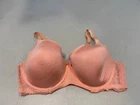 This George T-Shirt Bra in a delicate pink shade features a floral embroidered lace trim, offering a feminine and elegant touch. Designed with underwired cups and padded for support and shaping, this bra is in a size 36E with a bra strap closure. The opaque fabric and the George brand ensure quality and comfort, making it a stylish and practical addition to any lingerie collection for women.