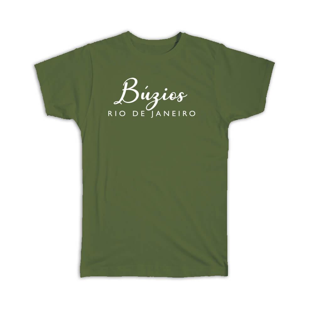 Gift T-Shirt : Buzios Cursive Typography Rio de Janeiro Tropical Beach Travel