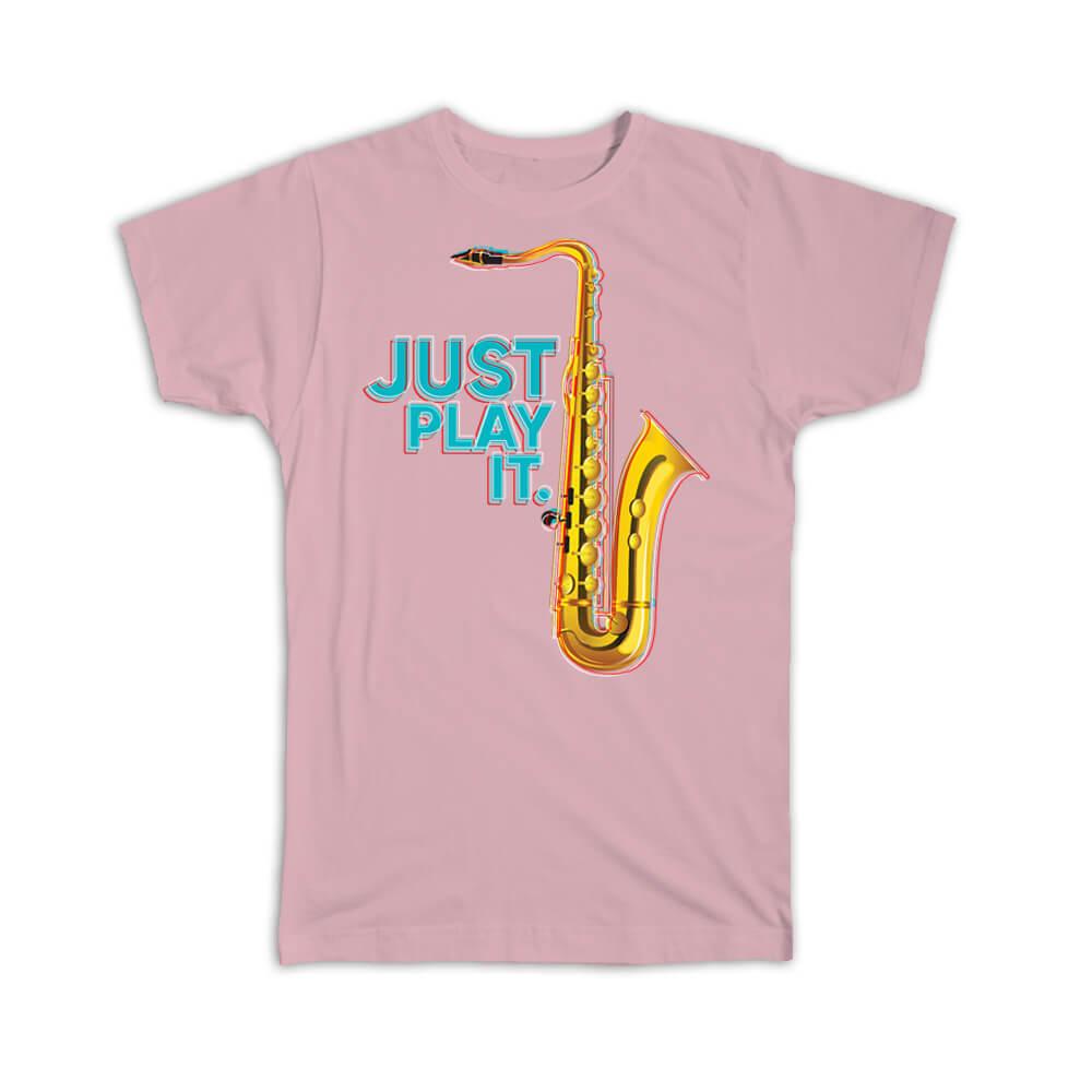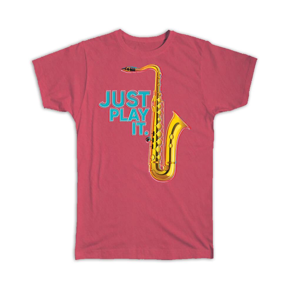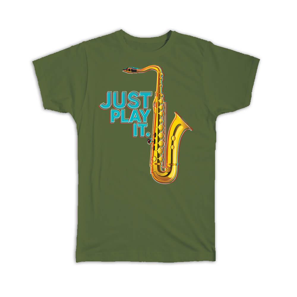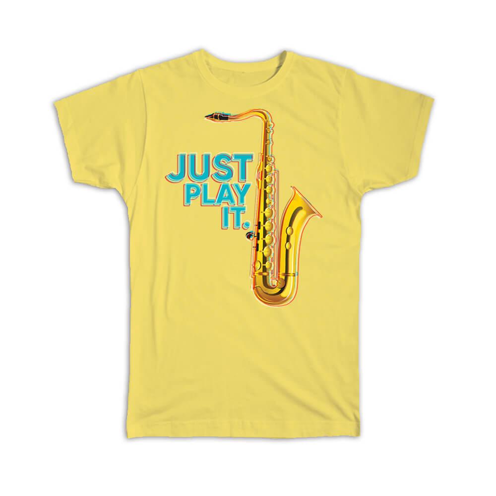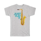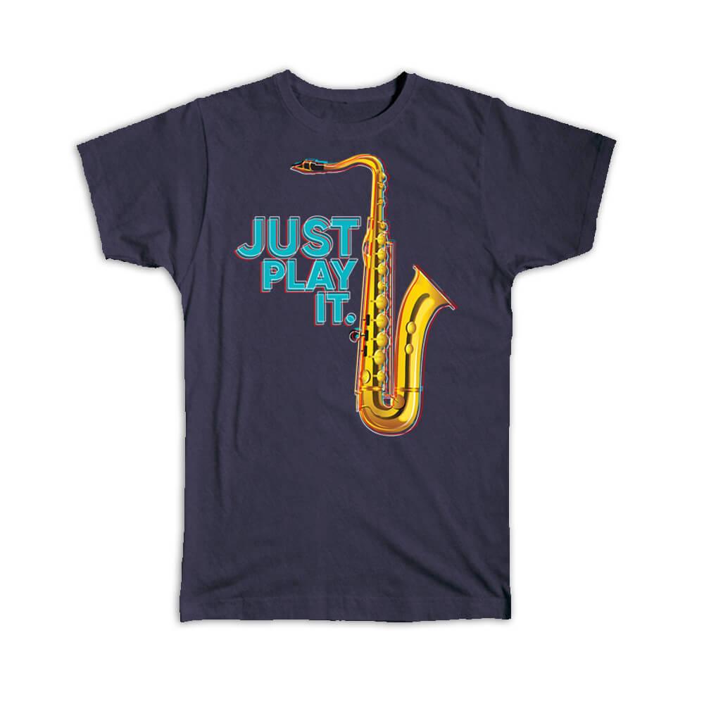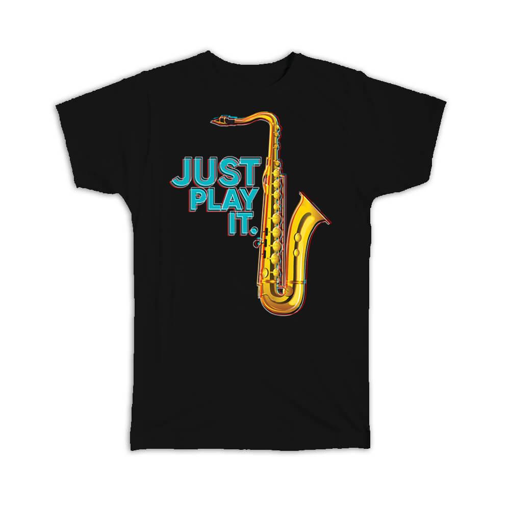 Gift T-Shirt : Just Play It Saxophone Retro Print Music Home Wall Decor Art Card