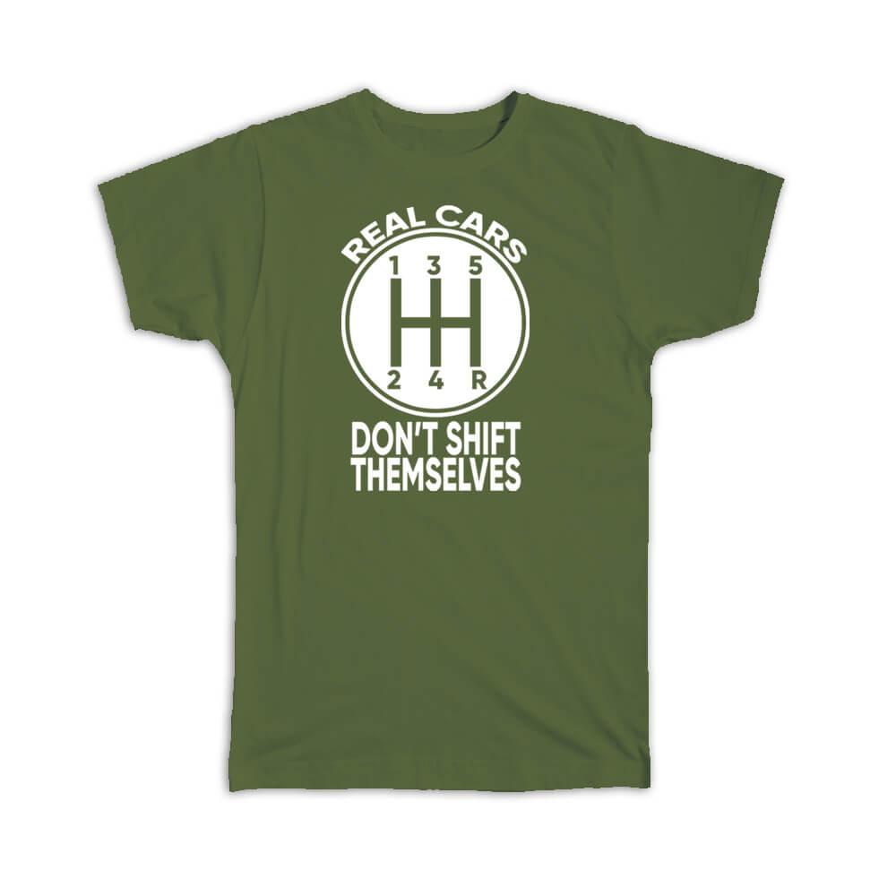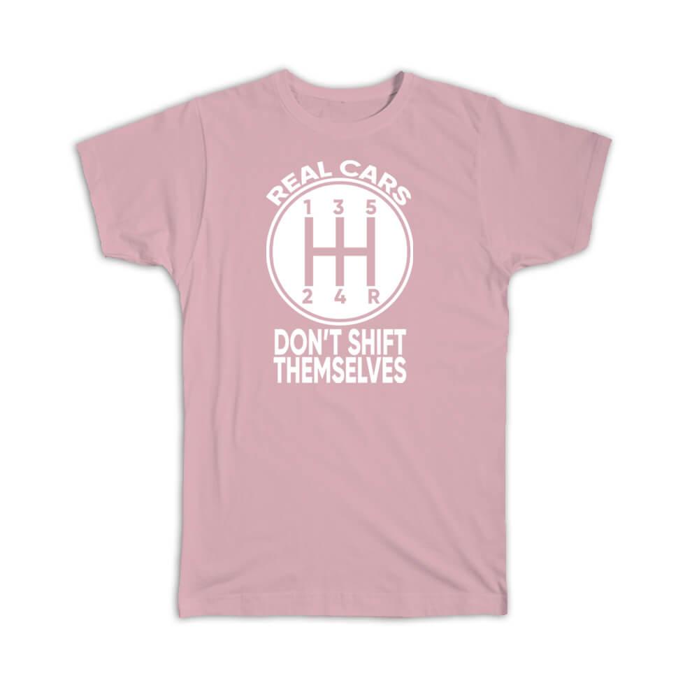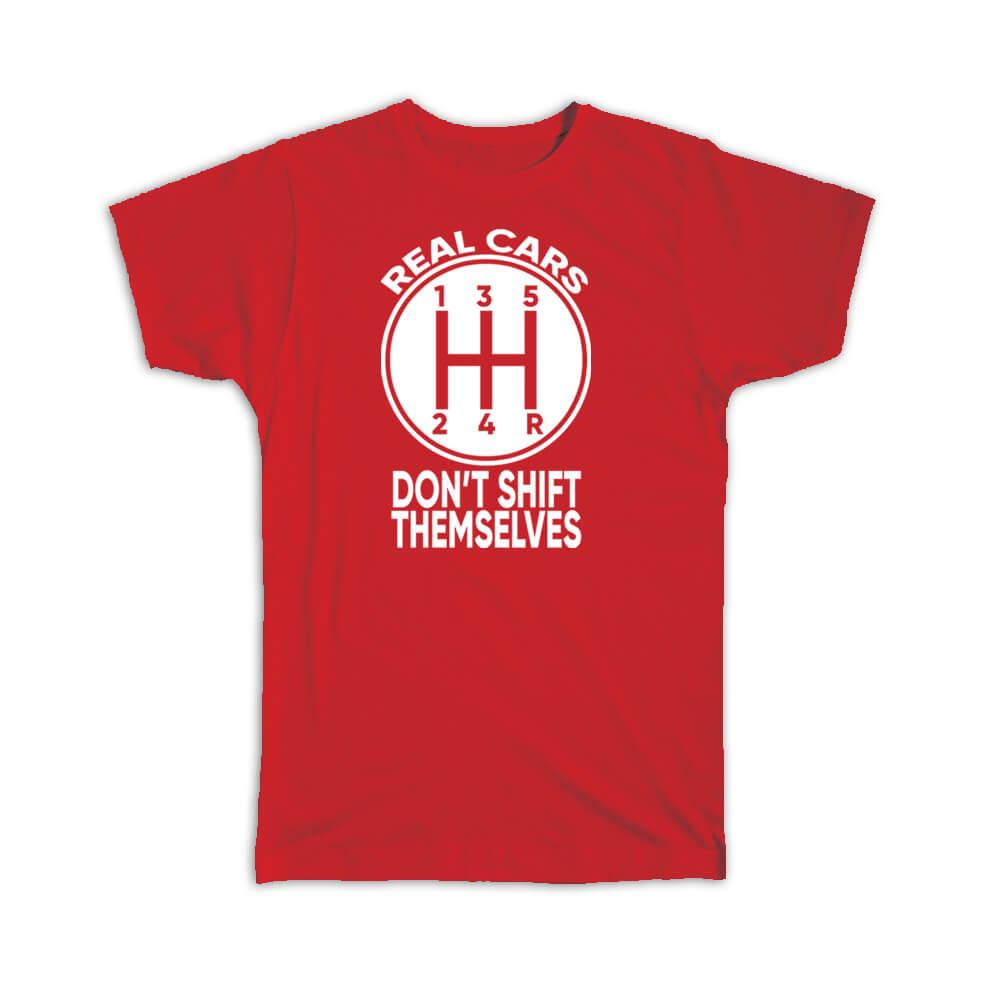 Gift T-Shirt : Real Cars Dont Shift Themselves Humor Funny Manual Car Black And