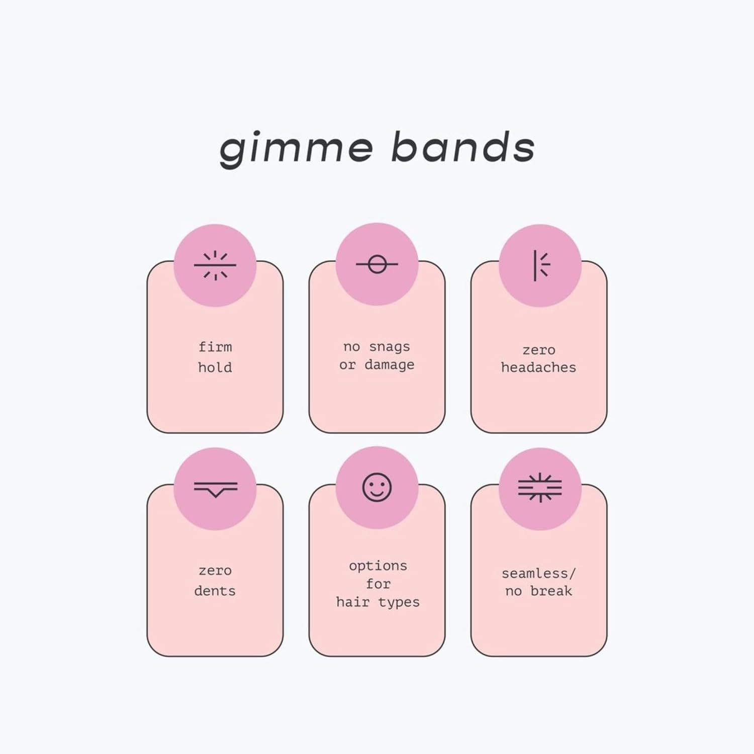 Top Rated Hair Elastics - These top-selling fabric hair ties are perfect for everyday use and compliment most hair types. Whether you have curly, long, straight or thick hair, we guarantee your ponytail will stay in place with comfort. Patented Design - Our patented material design is composed of hundreds of microfiber elastics that work together to spread tension and retain elasticity for a strong hold. Leave the worry behind of your ponytail holder breaking once and for all! Strongest + Longest Hold - Gimme Thick Fit Hair Bands can withstand up to 70 lbs. of pressure compared to standard elastics that break with an average of 8 lbs. of pressure. Secure Yet Gentle Grip - Enjoy a comfortable grip without the headache. Meet your go-to, grip-optimized seamless hair ties to secure a firm yet gentle hold for all hair types. Eliminate Bad Hair Days - Simply toss your Gimme Bands in the washer and dryer to shrink them back to their original size. It will also remove excess oils that build up on the hair band, helping each one feel fresh and new! At Gimme, we know hair solutions are not one size fits all. Each of you are unique, your hair care should be too. Product Description