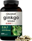 Ginkgo Biloba 6000mg w/ Red Panax Ginseng for Memory Focus Brain Health 300 Caps Product Description: NatureBell offers high concentrated ginkgo biloba capsules with Korean red panax ginseng. Derived from a 20 year old grown ginkgo leaf extract and a traditional ginseng root extract. Only 2 capsules per serving with 300 total high dosage capsules and up to a 5 month supply. 6,000mg ginkgo biloba herbal equivalent from a 500mg 12:1 extract with 500mg ginseng herbal equivalent from a 50mg 10:1 extract per dose. Every serving is standardized to retain 120mg of active ginkgo flavone glycosides. This ensures a high quality ginkgo brain booster supplement for men and women. Premium ginkgo biloba and ginseng brain health supplement that may promote blood and oxygen circulation, may also amplify memory, focus, and mental clarity. High purity nootropic herbs filled with important brain nutrients. They have been used traditionally for thousands of years for their many health properties. All natural non GMO ginkgo biloba capsules. Free of gluten, wheat, soy, dairy, eggs, fish/shellfish, peanuts, and tree nuts. It is also made in USA from global ingredients and 3 rd party lab tested for purity and potency.