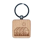 Glass Greenhouse with Sun and Plants Engraved Wood Square Keychain Tag Charm