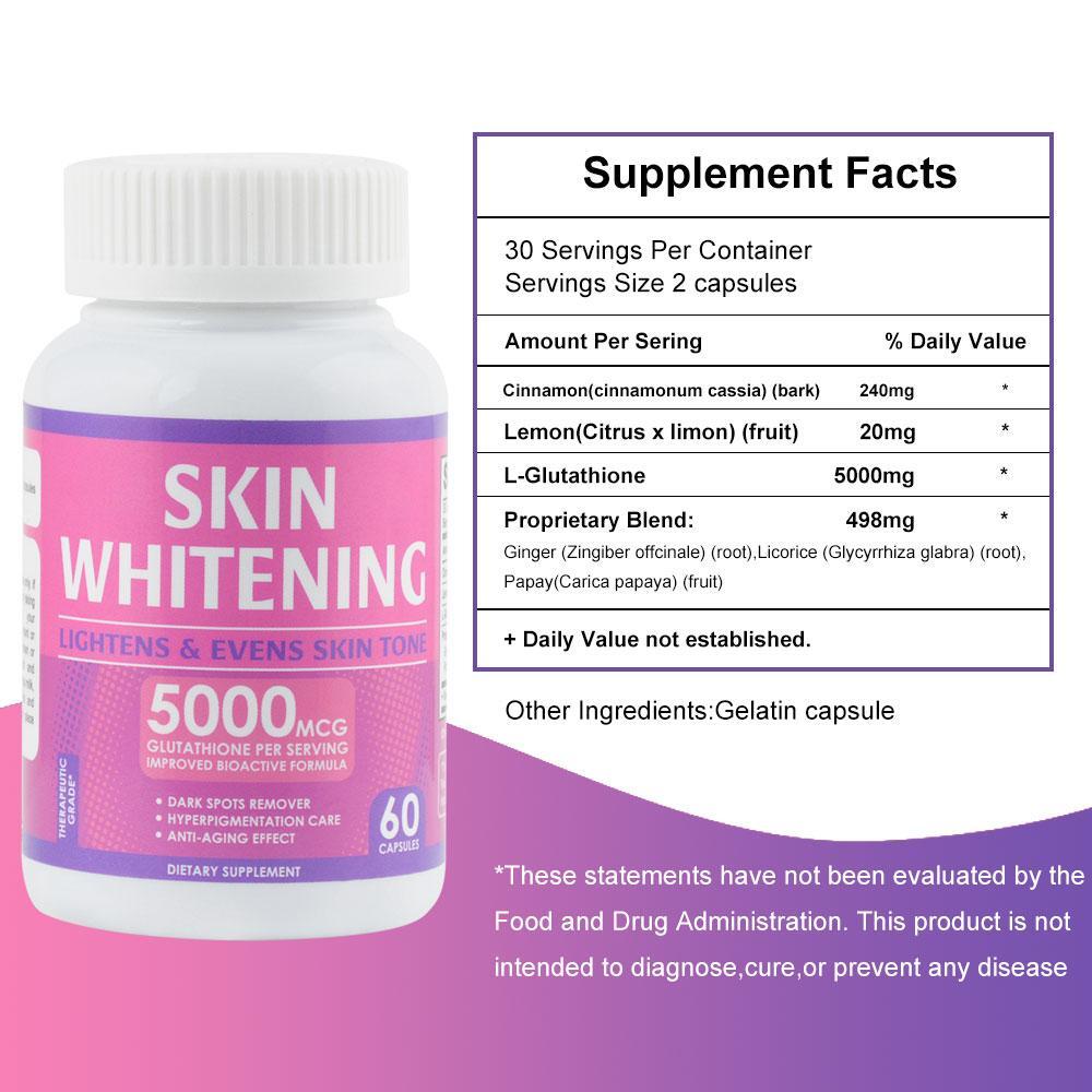 These glutathione whitening pills are a game-changer! I noticed brighter, more even-toned skin within weeks. The blend of natural ingredients like cinnamon and lemon boosts antioxidant support while promoting a healthy glow. Easy to take, vegan-friendly, and truly effective—my skin feels rejuvenated and looks noticeably clearer. Highly recommend for anyone wanting a radiant, youthful complexion!