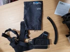 GoPro was not used very much, maybe 5 times. It turns on and works, as the picture shows. Comes with accessories: - Camera - Waterproof case - Vented back for case - Quick change mount - Adhesive base - Tripod Base - 2 Manuals - Extender Mount rod - Chesty Chest Mount Harness All are in great condition. Protective plate over charge ports and microSD slot is missing.