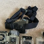 GoPro Hero 1st Gen + 2 Action Cams Cameras Housings Mounts Cases Accessories - this comes with extra mounts one regular lens and one fisheye, chest strap, head strap, charging cable and extra mounts with adhesives. One fisheye housing does not close but that one can probably be used for parts if necessary