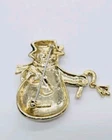 Gold-Tone Snowman Brooch with Candy Cane Charm 2 Inch Christmas Pin
