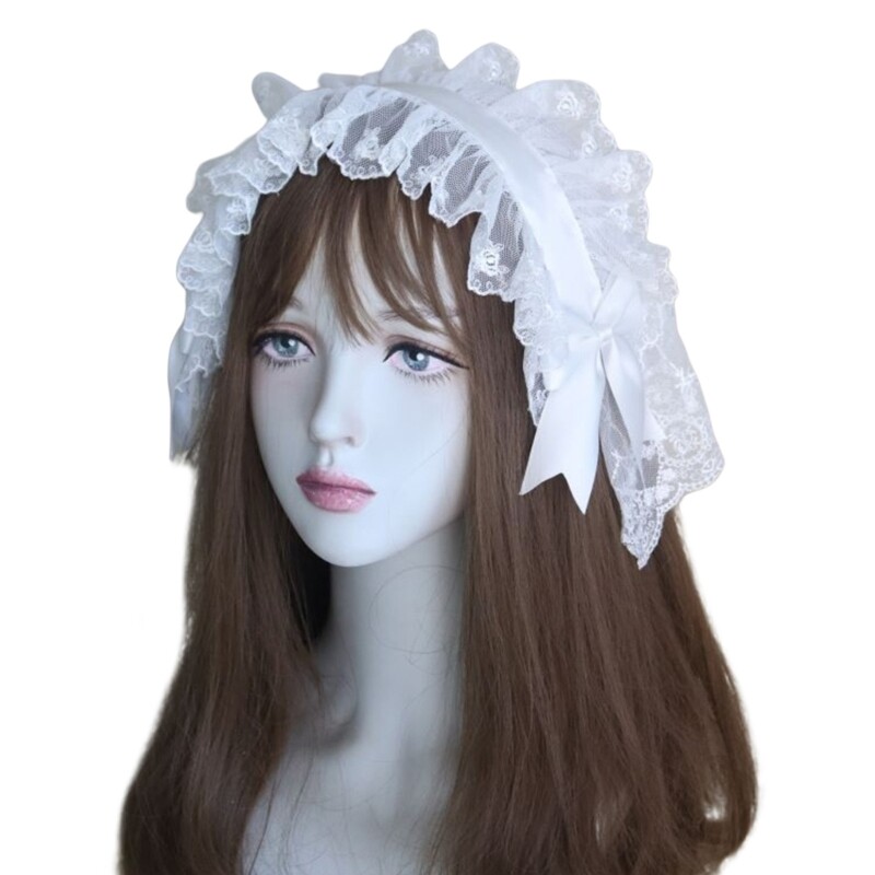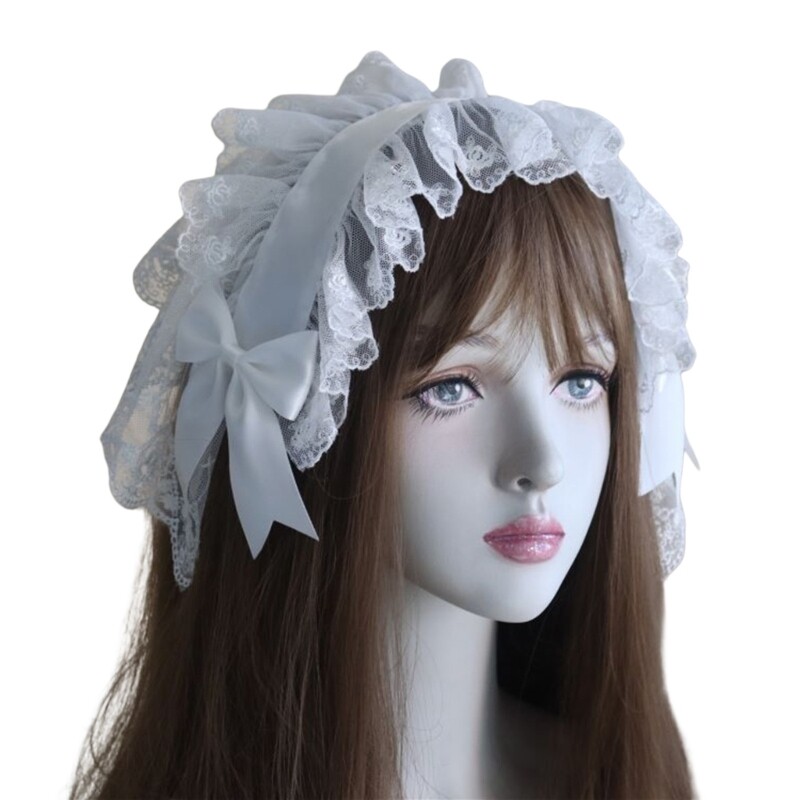 Gothic Lace Headbands with Flouncing Bows and Clip