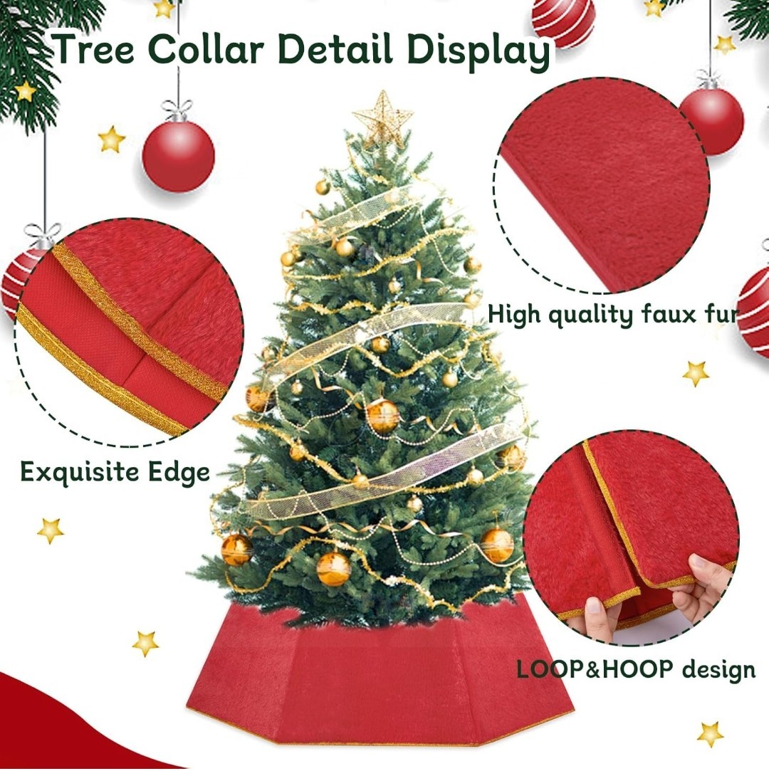 Add a touch of elegance and warmth to your festive decor with this Red Fax Fur Tree Collar. Measuring an ample 25.59 inches, it's designed to fit most standard Christmas trees, creating a charming base that complements your holiday theme. The luxurious red fur texture brings a plush feel to your seasonal arrangements, making it a standout addition to any holiday setting. Crafted for the Christmas season, this unbranded tree collar is perfect for those who appreciate a classic and festive look. It's versatile enough to blend with various holiday decors, ensuring your tree stands out in the best way. Whether it's for a cozy home or a chic holiday display, this tree collar sets the stage for a memorable celebration.