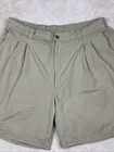 Men's Greg Norman khaki golf shorts in size 40 with a 9-inch inseam. These Bermuda-style shorts feature a pleated front and elastic stretch waist for comfort. Made of light wash cotton canvas fabric, they have a classic fit and solid beige color. Feel free to message me with any questions or requests for additional pics!