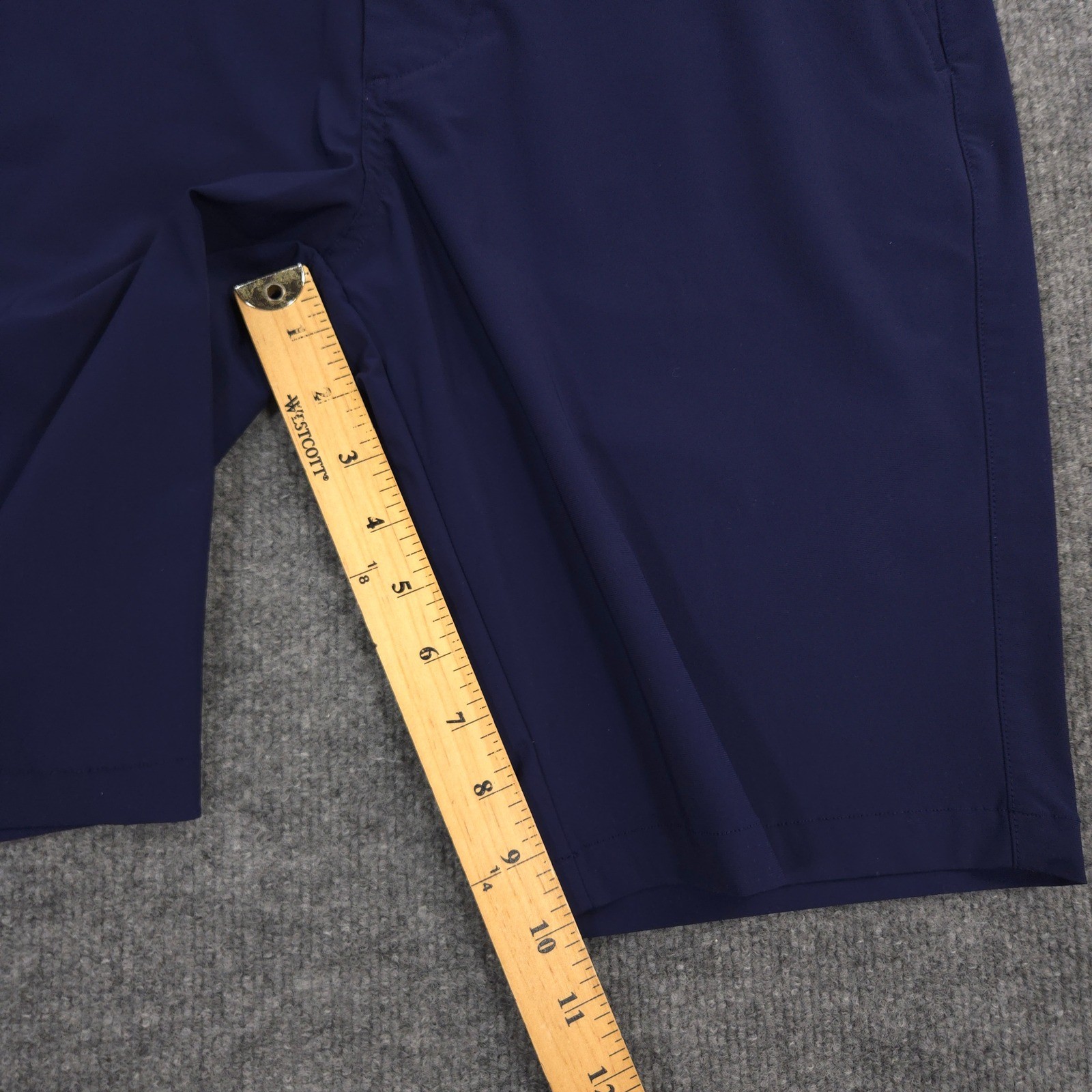 Greyson Montauk Performance Shorts Mens 32 Blue Chino Athletic Golf 10" Inseam Good condition. Light wear, two small marks below front button, scuffing on back, highlighted in last 2 photos. Please see photos for measurements. Sold as pictured. Thanks for looking! -Measurements are approximate, please measure and check your favorite items at home to estimate fit -100% authenticity guaranteed -Items typically ship next business day