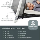 About this item CERTIFIED SAFE & LOW-VOC - It’s surprising, but some baby products, including play yards, still contain harsh chemicals. That didn’t fly with our team, so we had the Lotus tested, and certified, GreenGuard Gold – one of the only portable play yards to do so. What does that mean? No PVC, lead, formaldehyde, mercury, arsenic, phthalates, or other dangerous chemicals. Whether resting or playing, the Lotus truly creates a safe and comfortable environment for your little one WORRY-FREE AIRPORT TRAVEL - 3D Z-Fold Technology allows it to fold compact enough to carry through airports, making the Lotus Travel Crib a baby travel essential. The durable yet lightweight design weighs only 15 lbs and can be set up in just 15 seconds! The foldable crib’s ability to be carried as a lightweight backpack allows you to travel hands-free with ease. BUILD A BETTER BOND - Quietly and easily unzip the lockable side door to help your baby fall asleep or turn the portable crib into a play yard. With the door open, you can nurse or cuddle your little one to help them feel safe and secure in a new place and foster an even stronger connection. The updated insulated mattress has a thick, soft foam approved for overnight sleep (ages 0-3) making it a safe and comfortable environment for both resting and playing. LASTING COMFORT AND CONVENIENCE - The Lotus Crib portable playard is made with high-quality aluminum and non-slip rubberized feet, making it travel-ready and easy to assemble. It’s perfect for parents on-the-go who need a reliable and convenient portable travel crib. Plus, our portable toddler bed features a full-height ClearView mesh design for better visibility & airflow. Please Note: I am a reseller of these products and not an authorized distributor for the brand. As a result, these items do not carry any manufacturer warranty. All trademarks and brand names are the property of their respective owners, and I am not affiliated with or endorsed by the brand. By purchasing, you acknowledge and agree that the brand is not responsible for any claims or liabilities related to these products.